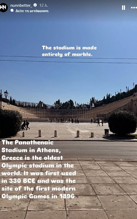 Συγκεκριμένα, περπάτησε στο Παναθηναϊκό στάδιο - γνωστό και ως Καλλιμάρμαρο- αναρτώντας φωτογραφία από τον περίπατό του, συνοδευόμενη από μερικές βασικές λεπτομέρειες του σταδίου, δείχνοντας με αυτόν τον τρόπο πόσο αγαπάει να γνωρίζει την χώρα μας, ολόενα και καλύτερα.