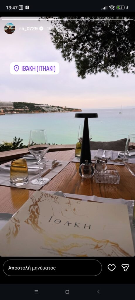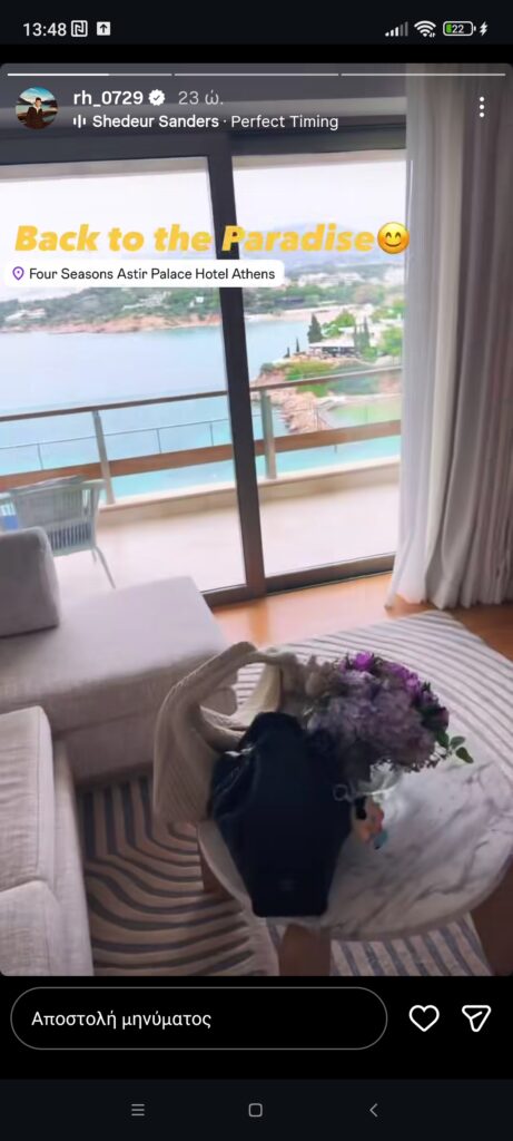Παράλληλα, χαρακτήρισε παράδεισο την επιλογή του μέρους που επέλεξε για να μείνει στην ολιγοήμερη παρουσία του στην Αθήνα κυρίως για επαγγελματικές υποχρεώσεις.