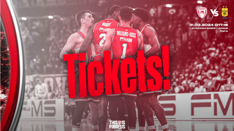 Η ΚΑΕ Ολυμπιακός ανακοίνωσε την διάθεση των εισιτηρίων του Κυριακάτικου (31/3, 17:15) αγώνα με τον Άρη που ξεκινάει την Πέμπτη (28/3)