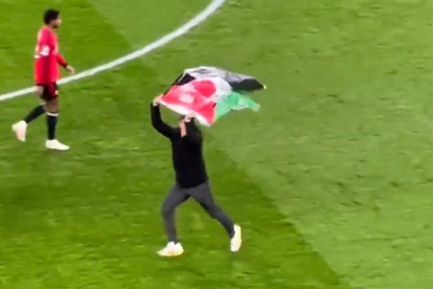 Οπαδός εισέβαλε στο γήπεδο κατά τη διάρκεια του Κοπεγχάγη - Μάντσεστερ Γιουνάιτεντ με σημαία της Παλαιστίνης