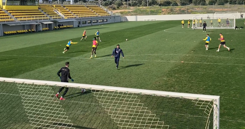 Ο Ματίας Αλμέιδα συμμετείχε κι εκείνος σε άσκηση με τους ποδοσφαιριστές του στην προπόνηση της Τετάρτης (21/02) στα Σπάτα.