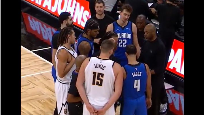Ο Νίκολα Γιόκιτς ντύθηκε... κατάσκοπος, κατά τη διάρκεια του αγώνα των Ορλάντο Μάτζικ με τους Ντένβερ Νάγκετς, προσπαθώντας να δει τι σχεδιάζει ο Τζαμάλ Μόσλεϊ στο πινακάκι του.