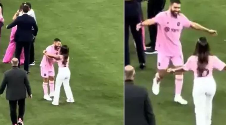 Η σύζυγος του Λιονέλ Μέσι, Αντονέλα Ρακούζο μπήκε στον αγωνιστικό χώρο για να συγχαρεί τον άντρα της, όμως μπερδεύτηκε και αγκάλιασε τον Τζόρντι Άλμπα.