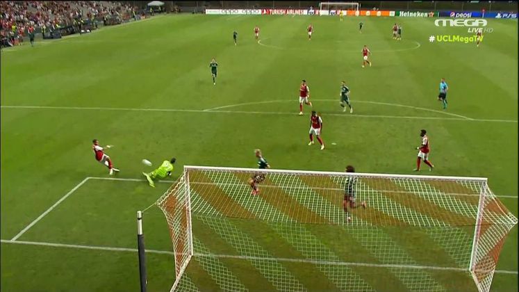 Η σπουδαία απόκρουση του Ιταλού τερματοφύλακα του Παναθηναϊκού, Αλμπέρτο Μπρινιόλι στο 90'+4 που κράτησε ζωντανό το «τριφύλλι» και έδωσε ένα λεπτό αργότερα την ευκαιρία να μειώσει το σκορ με το γκολ του Μαντσίνι.
