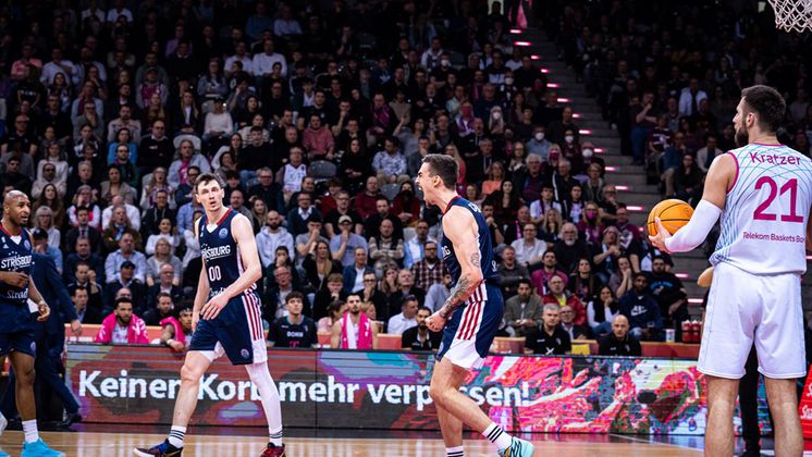 Η Στρασμπούρ «έσπασε την έδρα της Τέλεκομ Βόννης (76-77) και έκανε το πρώτο από τα δύο βήματα που χρειάζεται για να πάρει την πρόκριση στο Final 4 του BCL. Ο Κιν με επτά πόντους στα τελευταία λεπτά ήταν ο παίκτης - κλειδί για τη νίκη των Γάλλων.
