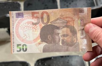 Λίγο πριν ξεκινήσει η αναμέτρηση ΑΕΚ - Ολυμπιακός, έξω από την «OPAP Arena» κυκλοφόρησαν χαρτονομίσματα με τον Βαγγέλη Μαρινάκη και τον Σωκράτη Παπασταθόπουλο