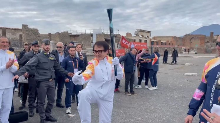 Ο εμβληματικός ηθοποιός Τζάκι Τσαν, μετέφερε την Ολυμπιακή Φλόγα στην Πομπηία της Ιταλίας, ενόψει των Χειμερινών Ολυμπιακών Αγώνων.