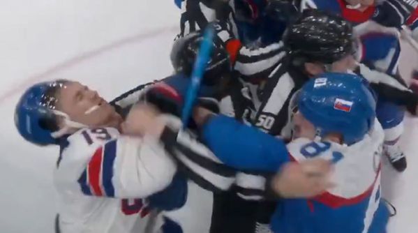 Ξέφυγε η κατάσταση στο τέλος του ημιτελικού στο χόκεϊ ανδρών, ανάμεσα σε ΗΠΑ και Σλοβακία με τους αθλητές να πιάνονται στα χέρια και να ανταλλάσσουν γροθιές.