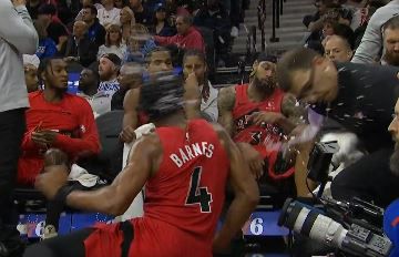 Το περιστατικό, που καταγράφηκε από την τηλεοπτική κάμερα, συνέβη κατά την ήττα του Τορόντο από τη Φιλαδέλφεια με 130-120.