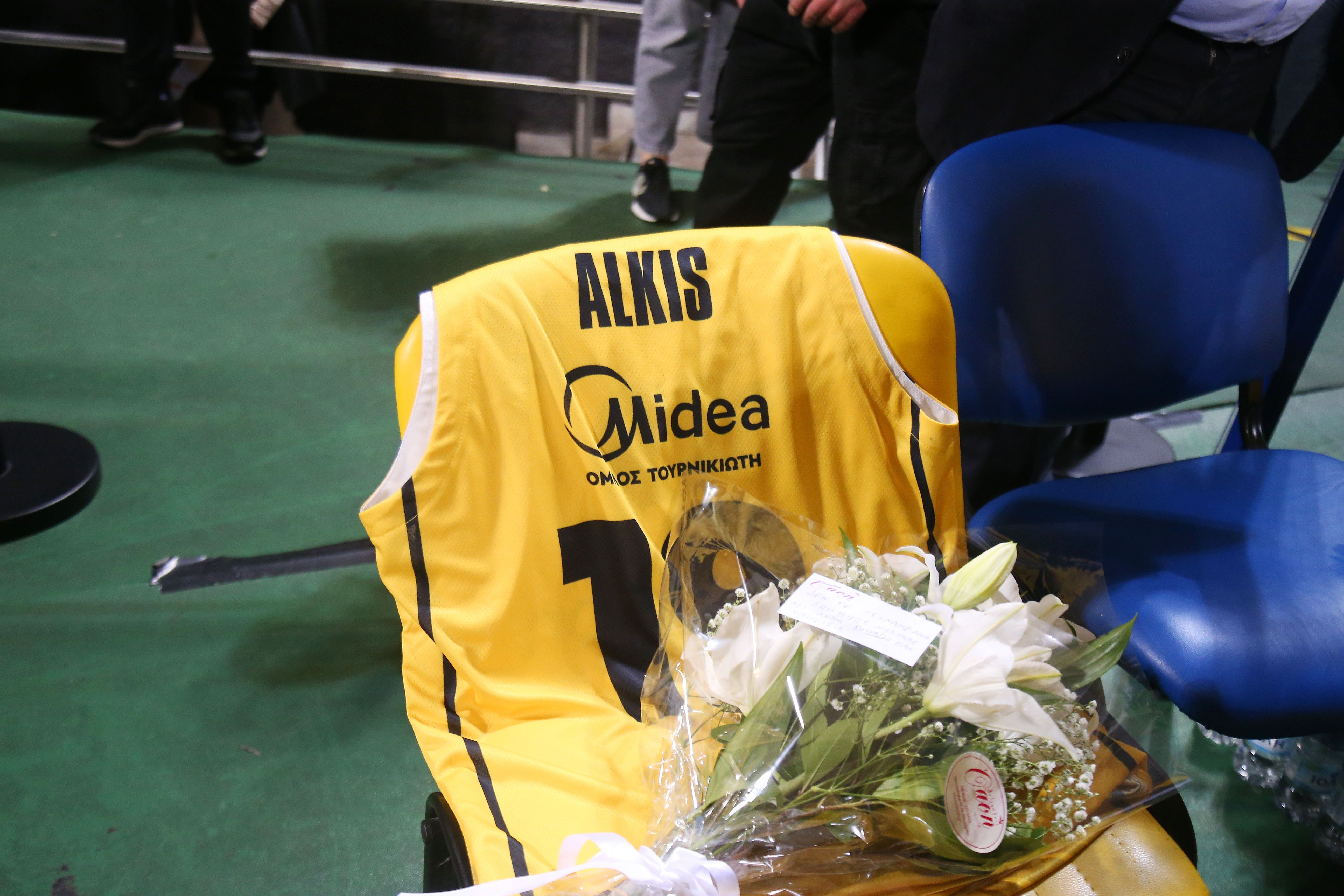 Οι φίλοι του Άρη σήκωσαν ένα πανό στη μνήμη μου, ενώ πριν το τζάμπολ υπήρξε μια συγκινητική στιγμή, με τους αρχηγούς των δυο ομάδων, Λευτέρη Μποχωρίδη και Κώστα Σλούκα, να κρατούν μαζί μια μπλούζα με τον αριθμό 19 (η ηλικία στην οποία ήταν ο Άλκης όταν δολοφονήθηκε), στην οποία αναγραφόταν το όνομά του. Μάλιστα, πάνω στη φανέλα του, αφέθηκε ανθοδέσμη. Φυσικά, τηρήθηκε κι ενός λεπτού σιγή.