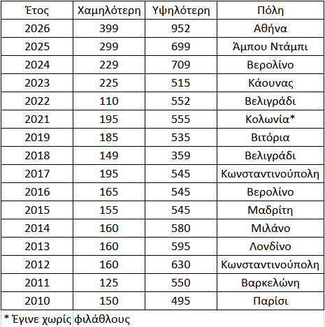 Ετος - Χαμηλότερη - Υψηλότερη - Πόλη