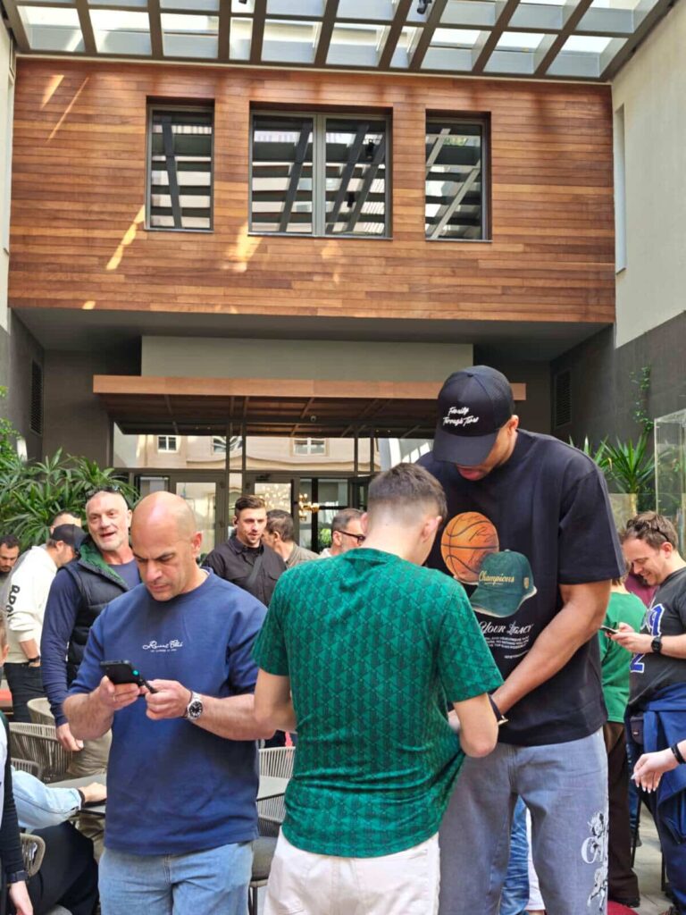 Aποθέωση και κατά την αναχώρηση από το ξενοδοχείο με τους φιλάθλους να ζητούν αυτόγραφα και φωτογραφίες!