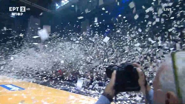 Με το τζάμπολ του αγώνα, χιλιάδες χαρτάκια εκτοξεύτηκαν από τις κερκίδες, καλύπτοντας ολόκληρο τον αγωνιστικό χώρο και δημιουργώντας ένα «χιονισμένο» τοπίο. Η ατμόσφαιρα θύμισε έντονα τις μεγάλες στιγμές των περσινών τελικών του FIBA Europe Cup απέναντι στην Μπιλμπάο.