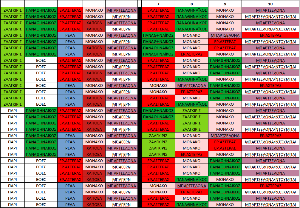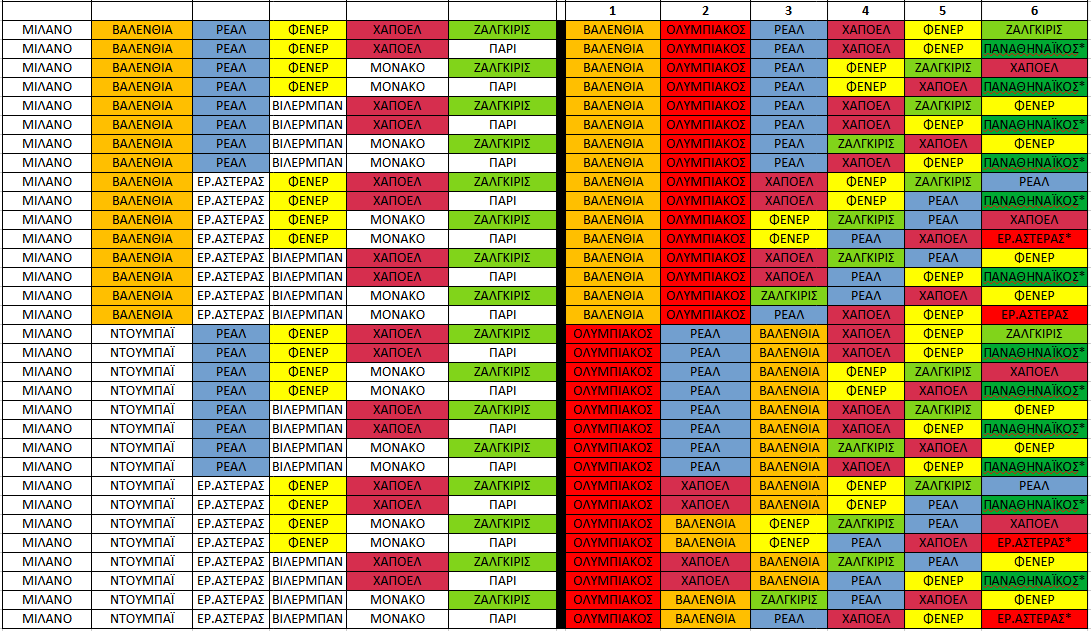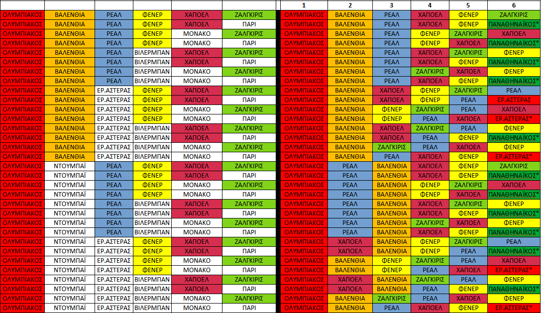 Ιδού οι πίνακες με την υποσημείωση ότι στον 1ο και 2ο πίνακα η αναφορά στον Παναθηναϊκό με * (αστερίσκο) δίπλα στο όνομα της ομάδας προϋποθέτει νίκη την τελευταία αγωνιστική για την κατάκτηση της σχετικής θέσης (6ης θέσης εν προκειμένω).