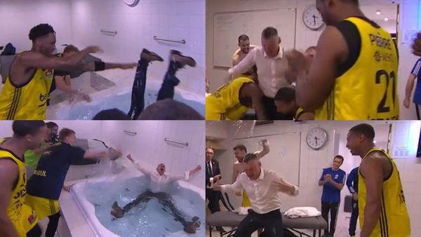 Έγινε χαμός στα αποδυτήρια της Φενέρ. Οι παίκτες άρχισαν να λούζουν τον Λιθουανό προπονητή με κρύο νερό και στη συνέχεια τον πέταξαν στο τζακούζι. Το γλέντι σίγουρα θα κρατήσει μέχρι αργά το βράδυ. Πρόκειται για μεγάλη επιτυχία για την Φενέρ, καθώς είναι η δεύτερη συνεχόμενη χρονιά που προκρίνεται στο Final Four.