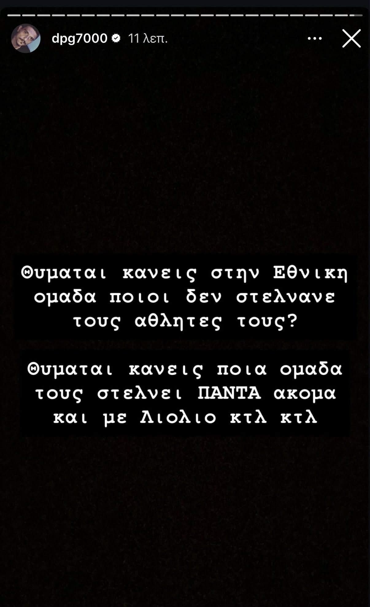Ο Δημήτρης Γιαννακόπουλος άφησε αιχμές για τη στάση του Ολυμπιακού απέναντι στην εθνική ομάδα μέσω νέου στόρι στο Instagram.