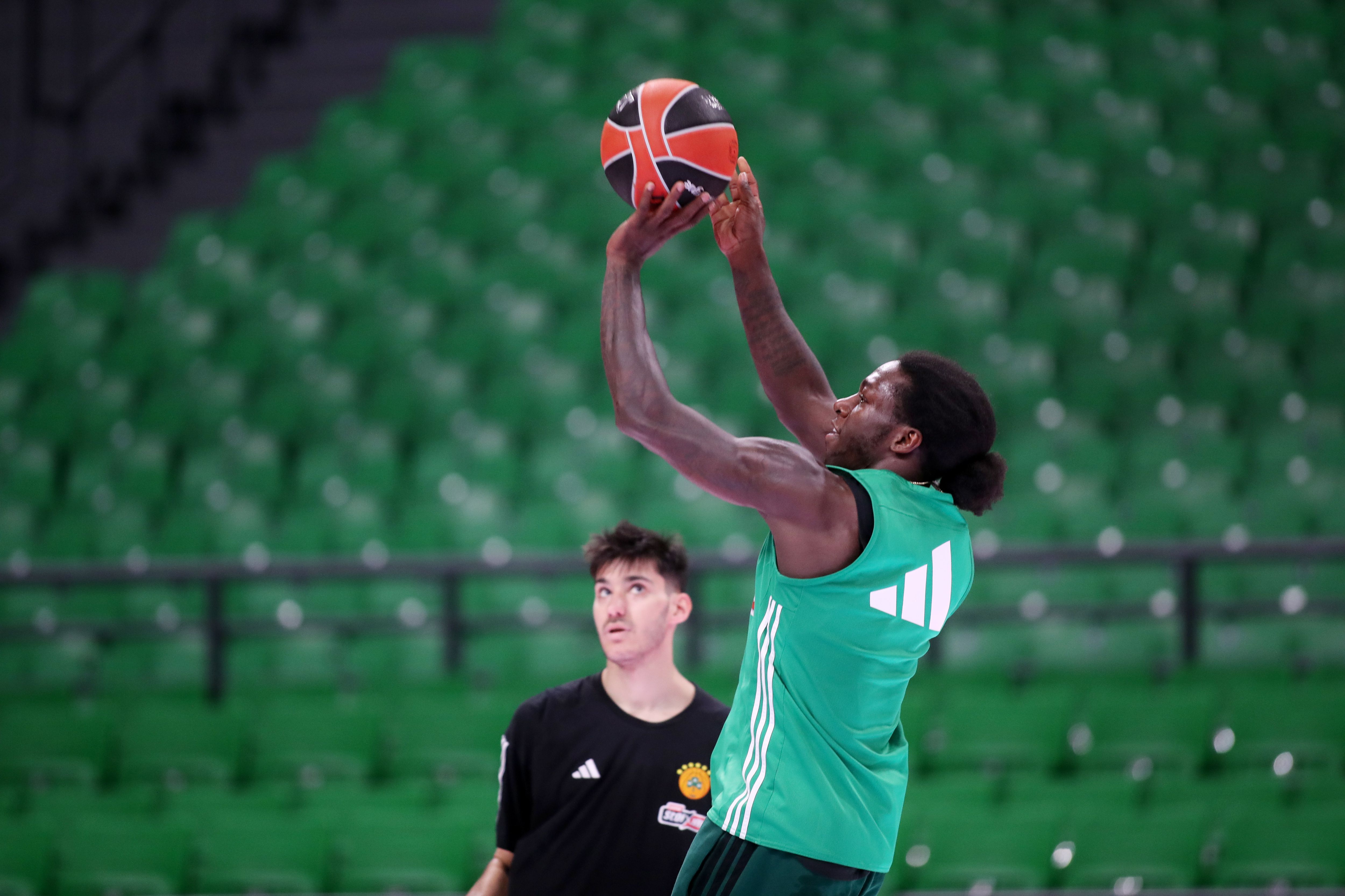 Ο σταρ των «πρασίνων» εμφανίστηκε στο παρκέ με τα μαλλιά του πιασμένα σε κοτσίδα, ένα στυλ που δεν πέρασε απαρατήρητο.
