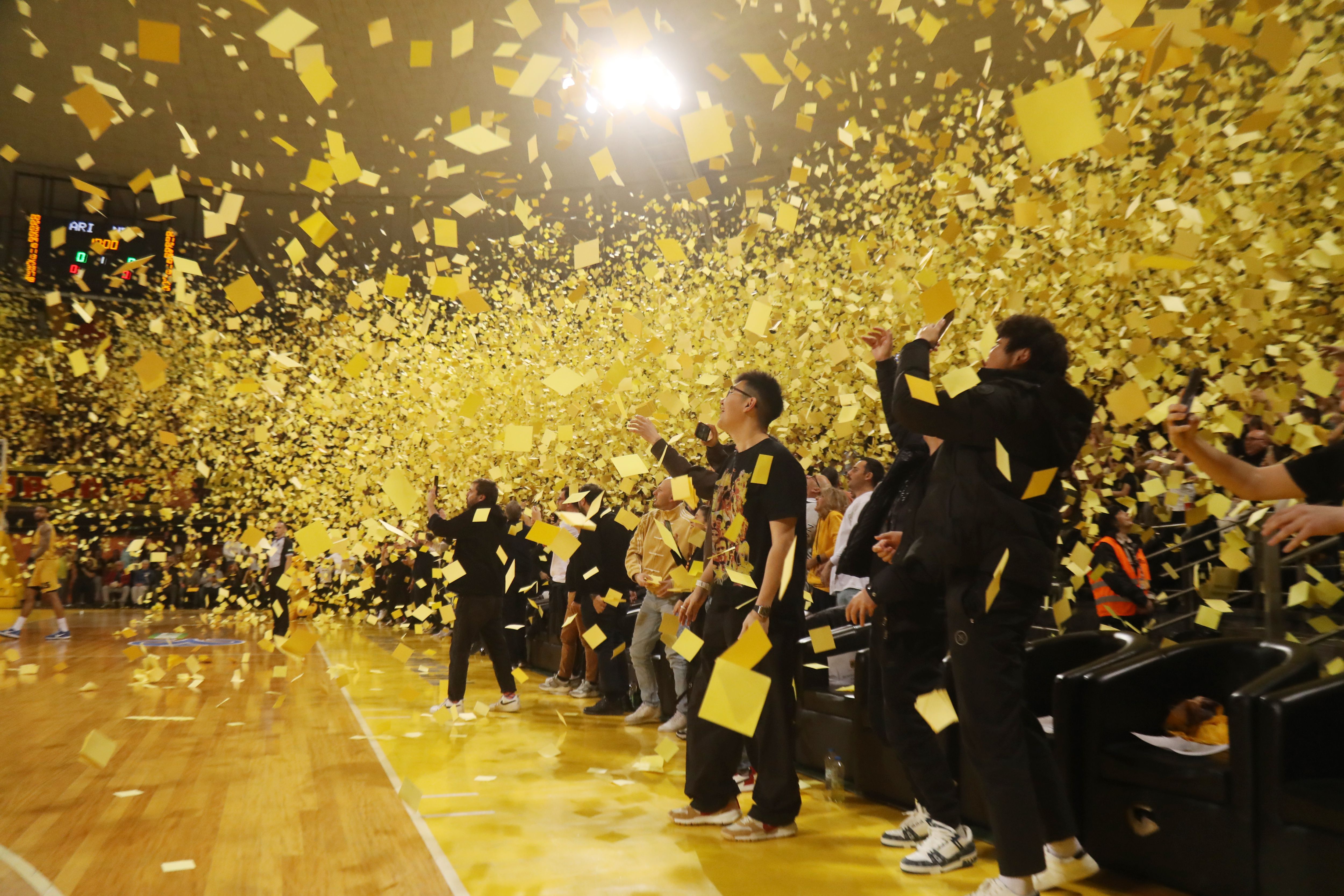 Το κατάμεστο Nick Galis Hall «ντύθηκε» στα κίτρινα στο τζάμπολ, με τους φίλους του Άρη να δημιουργούν εντυπωσιακή ατμόσφαιρα και τον Ρίτσαρντ Σιάο να απολαμβάνει το γεγονός.