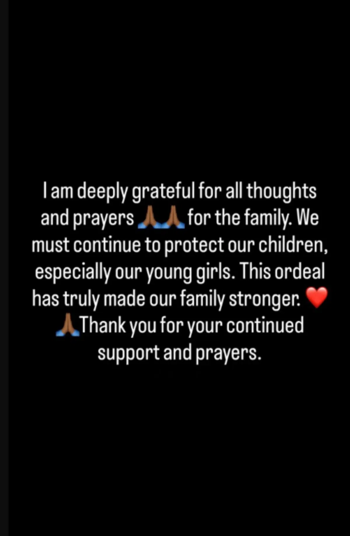 Ο ίδιος ο Πάτρικ Μπέβερλι, μετά την απόφαση της Δευτέρας, έγραψε: «Είμαι βαθιά ευγνώμων για όλες τις σκέψεις και τις προσευχές για την οικογένεια. Πρέπει να συνεχίσουμε να προστατεύουμε τα παιδιά μας, ειδικά τα μικρά κορίτσια μας. Αυτή η δοκιμασία έχει πραγματικά κάνει την οικογένειά μας πιο δυνατή. Σας ευχαριστούμε για τη συνεχή υποστήριξη και τις προσευχές σας».