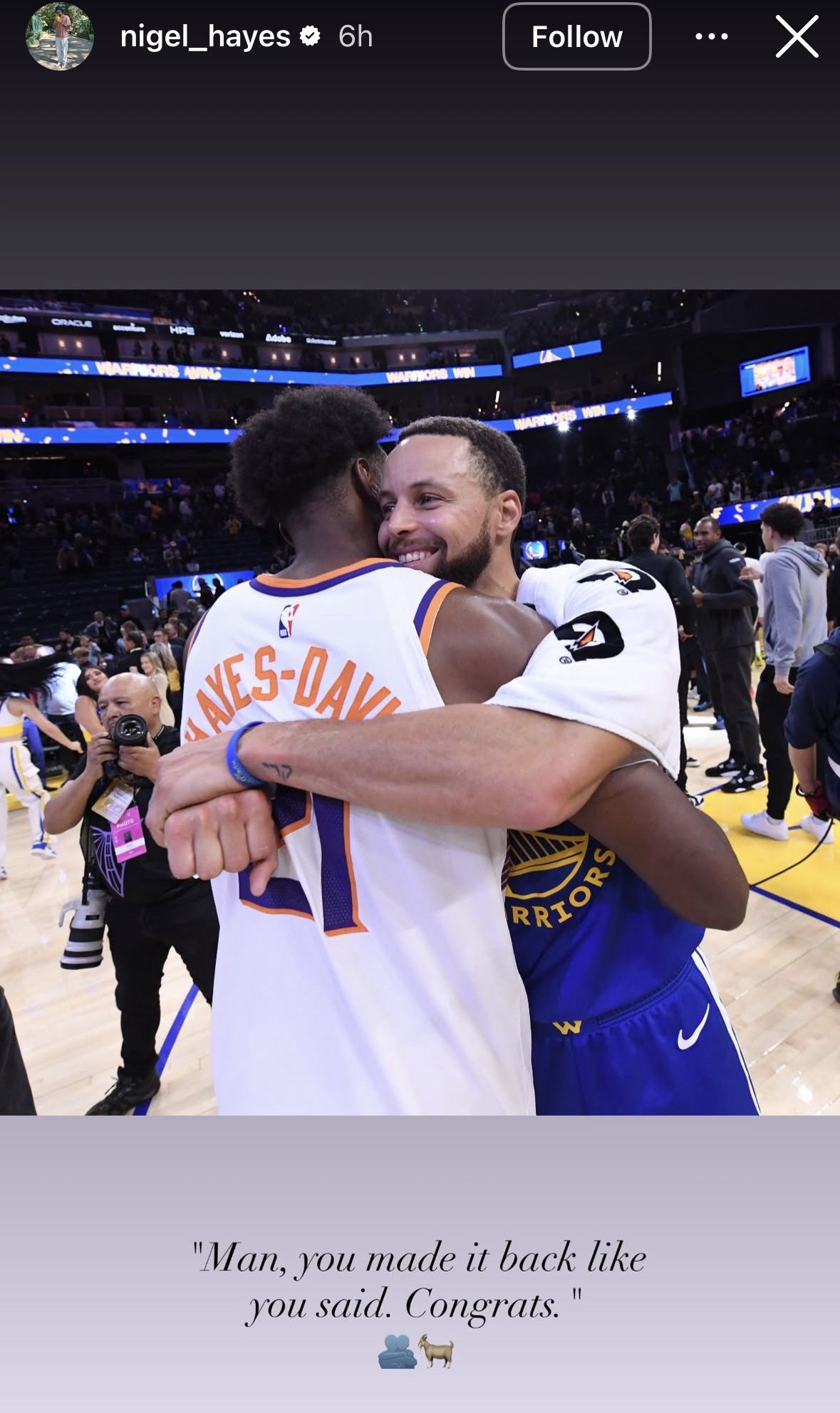 Οι δύο παίκτες συνάντηθηκαν ξανά στα παρκέ, με τον Χέιζ να μοιράζεται με τους διαδικτυακούς του φίλους τη συνάντηση, αποκαλύπτοντας μάλιστα τα λόγια του σταρ των Γουόριορς.