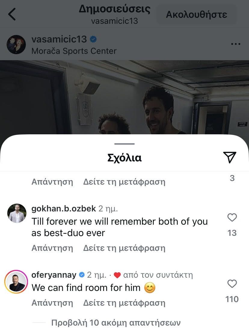 Ο ιδιοκτήτης της Ισραηλινής ομάδας που έχει αποφασίσει να δίνει ό,τι ζητάει - και ό,τι δεν ζητάει - ο Σέρβος, έκανε ξανά την εμφάνισή του στα σχόλια της δημοσίευσης του 32χρονου, γράφοντας: «Μπορούμε να βρούμε χώρο για εκείνον» - δηλαδή για τον αγαπημένο του συμπαίκτη και φίλο, Σέιν Λάρκιν.