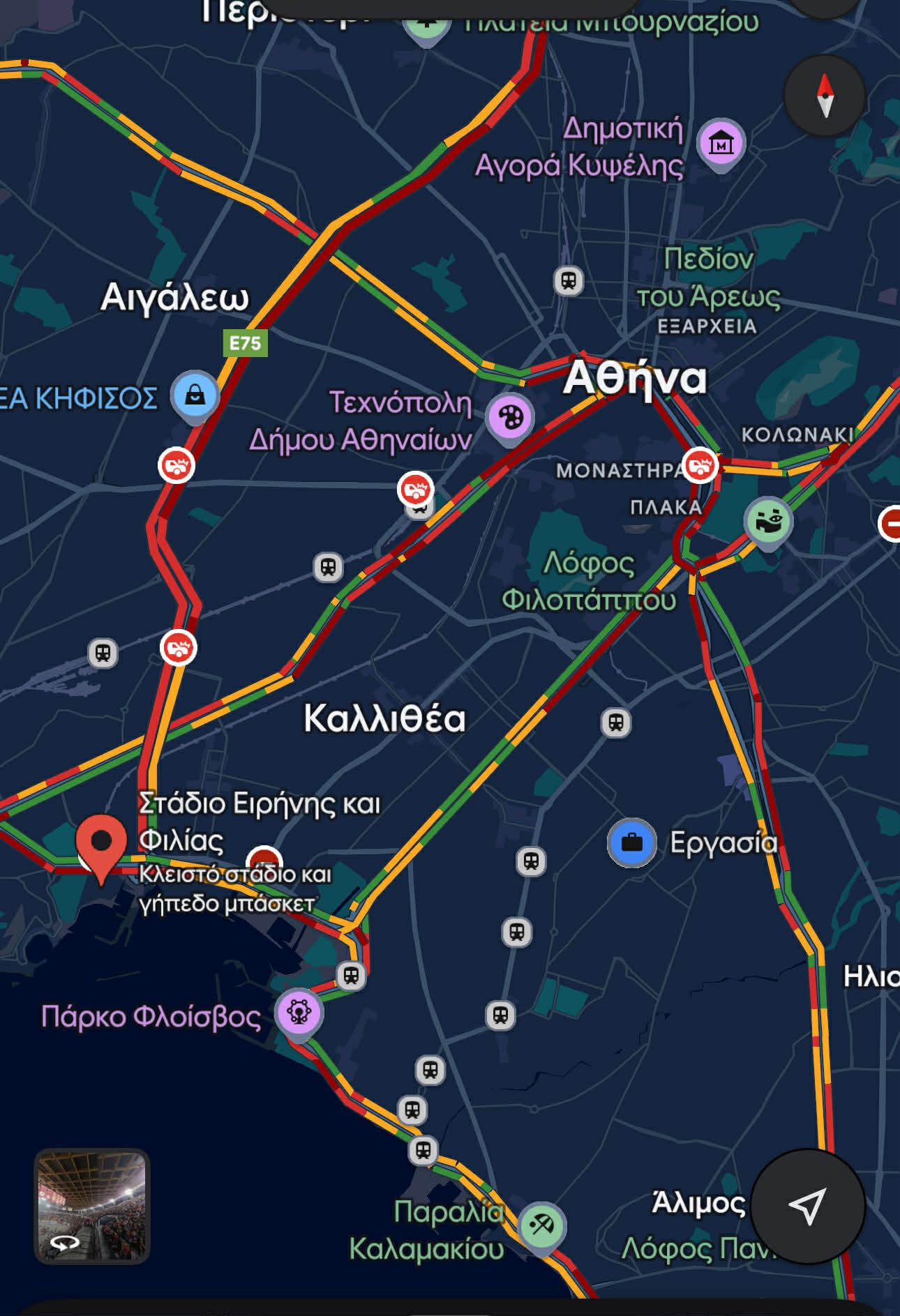 Με βάση το google maps, οι περισσότεροι κεντρικοί δρόμοι είναι «κατακόκκινοι», όπως και ο Κηφισός. Ενδεικτικά ένας για να πάει από το Μαρούσι στο Φάληρο, χρειάζεται πάνω από 1 ώρα και ένα τέταρτο.