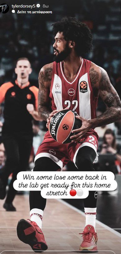 Ο Ολυμπιακός ηττήθηκε με 89-77 στην Ισπανία από την Ρεάλ Μαδρίτης, έχοντας ως πρώτο σκόρερ τον Τάιλερ Ντόρσεϊ με 20 πόντους. Ο ομογενής γκαρντ σχολίασε την αναμέτρηση μέσω του προσωπικού του λογαριασμού στο Instagram.
