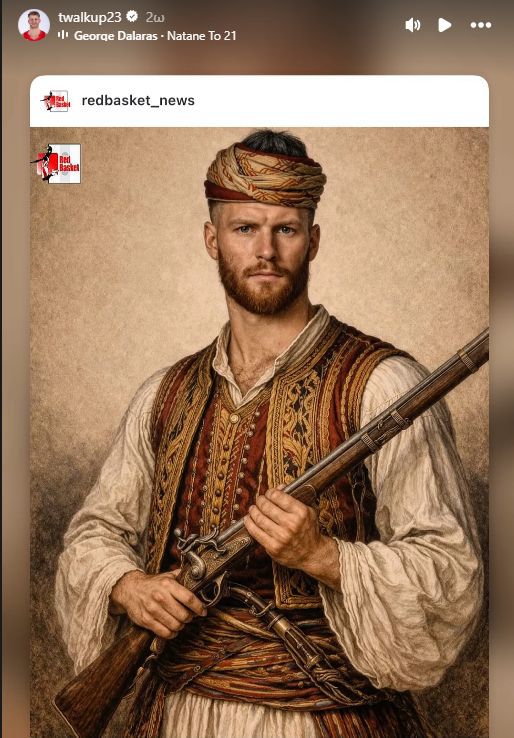 Σε Instagram Story, ο Τεξανός γκαρντ κοινοποίησε edit από fan page του Ολυμπιακού, στο οποίο απεικονίζεται ως οπλαρχηγός της Ελληνικής Επανάστασης του 1821, με μουσική υπόκρουση το τραγούδι του Γιώργου Νταλάρα «Να ’τανε το ’21».