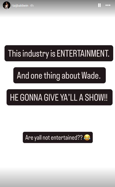 Λίγο αργότερα, η σύζυγος του Αμερικανού παίκτη τοποθετήθηκε δημόσια για το περιστατικό μέσα από τον λογαριασμό της στο Instagram. Σε story που δημοσίευσε, έγραψε χαρακτηριστικά: «Αυτή η βιομηχανία είναι ΨΥΧΑΓΩΓΙΑ. Και ένα πράγμα για τον Γουέιντ. ΘΑ ΣΑΣ ΠΡΟΣΦΕΡΕΙ ΘΕΑΜΑ!! Δεν διασκεδάσατε;».