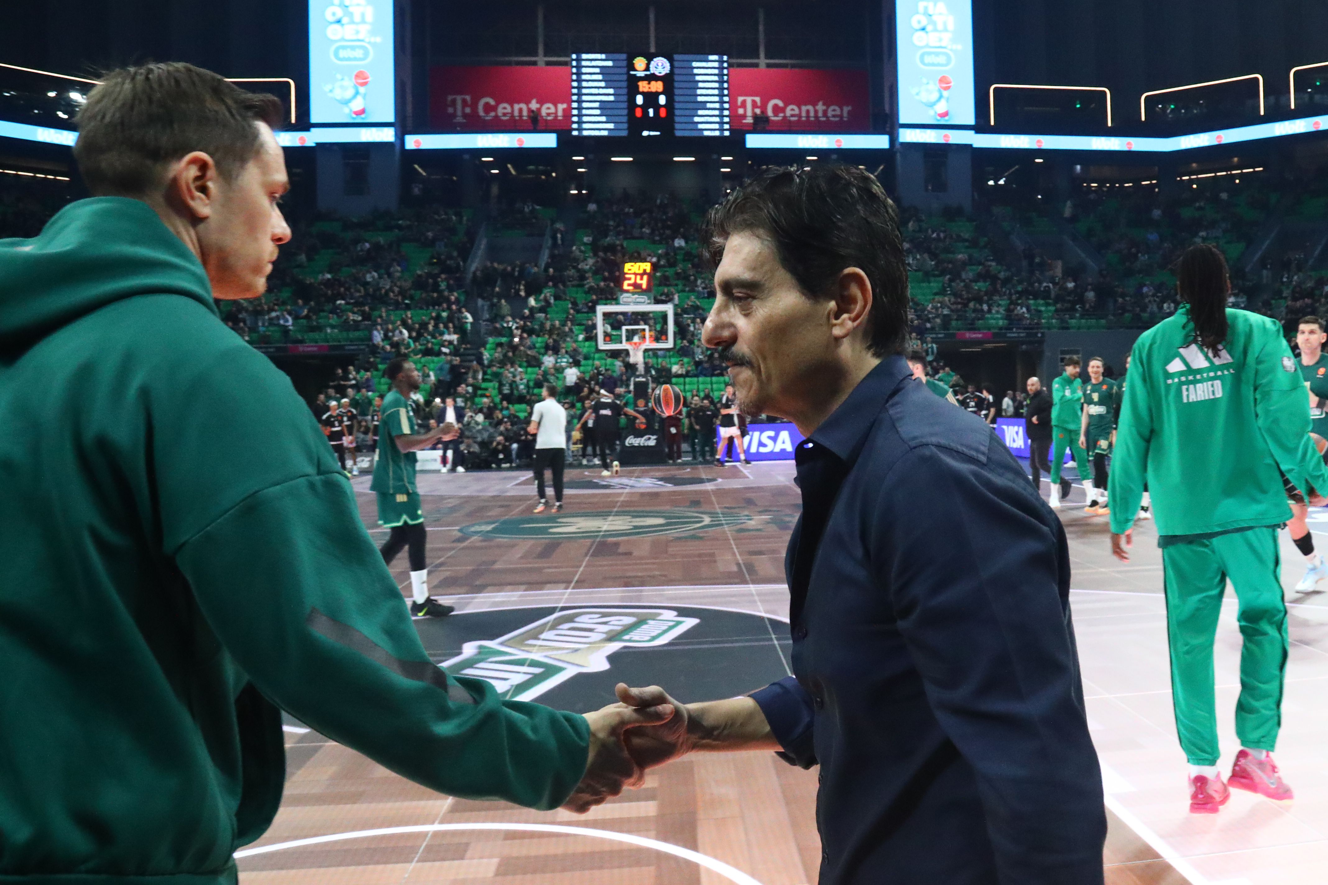 Ο ίδιος φυσικά αποθεώθηκε από τον κόσμο των πράσινων, που θα γεμίσουν απόψε το Telekom Center Athens. Μετά από λίγο, αποχώρησε από το glass floor για να πάει στο σημείο που κάθεται και να παρακολουθήσει από κοντά το ματς.
