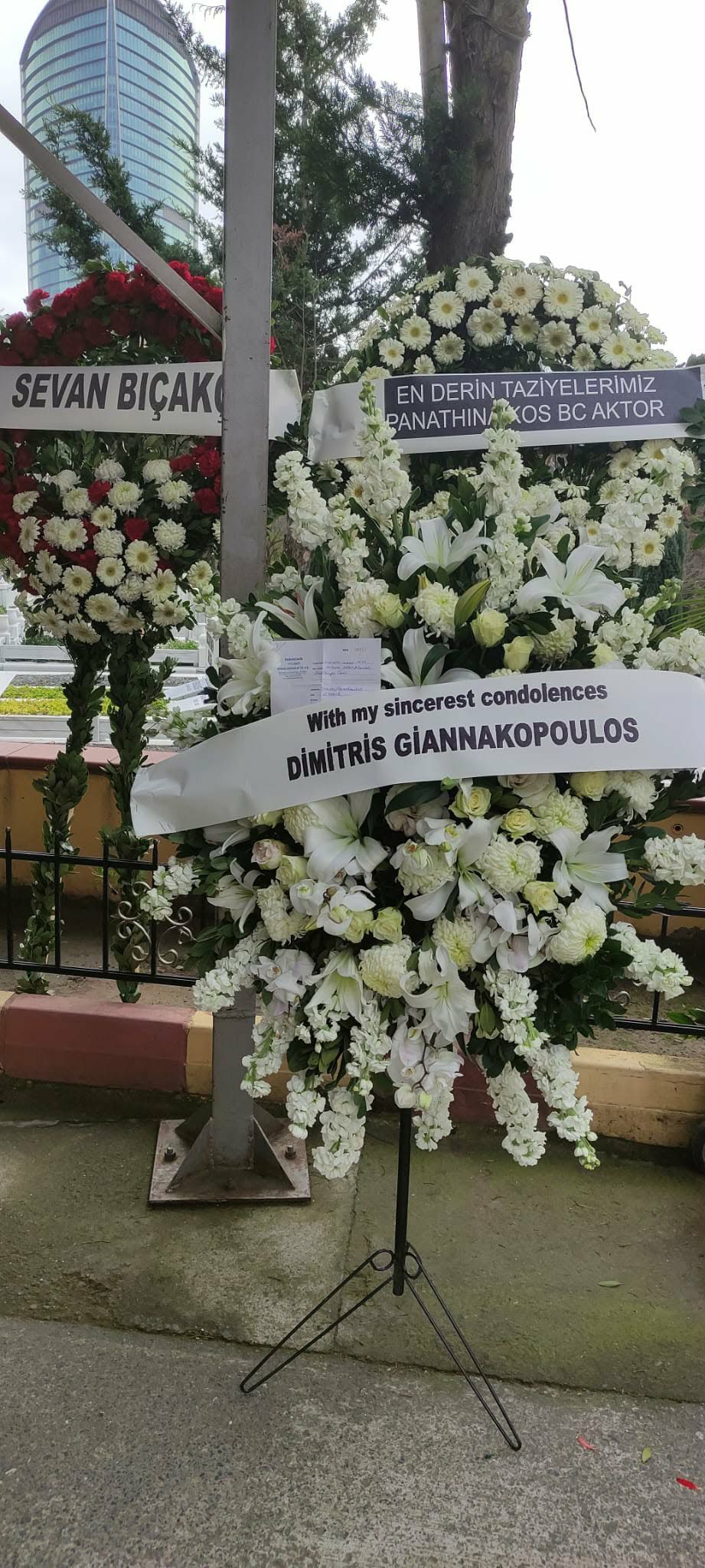 Στεφάνια στη μνήμη της εκλιπούσας απέστειλαν τόσο ο Δημήτρης Γιαννακόπουλος όσο και η ΚΑΕ Παναθηναϊκός.