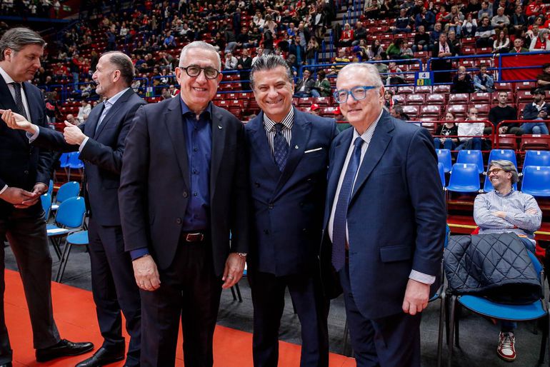 Παράλληλα, το «παρών» στο Μιλάνο έδωσε και η διοίκηση της EuroLeague, με τον πρόεδρο, Ντέγιαν Μποντιρόγκα, να είναι πλαισιωμένος από τον νέο CEO, Τσους Μπουένο.