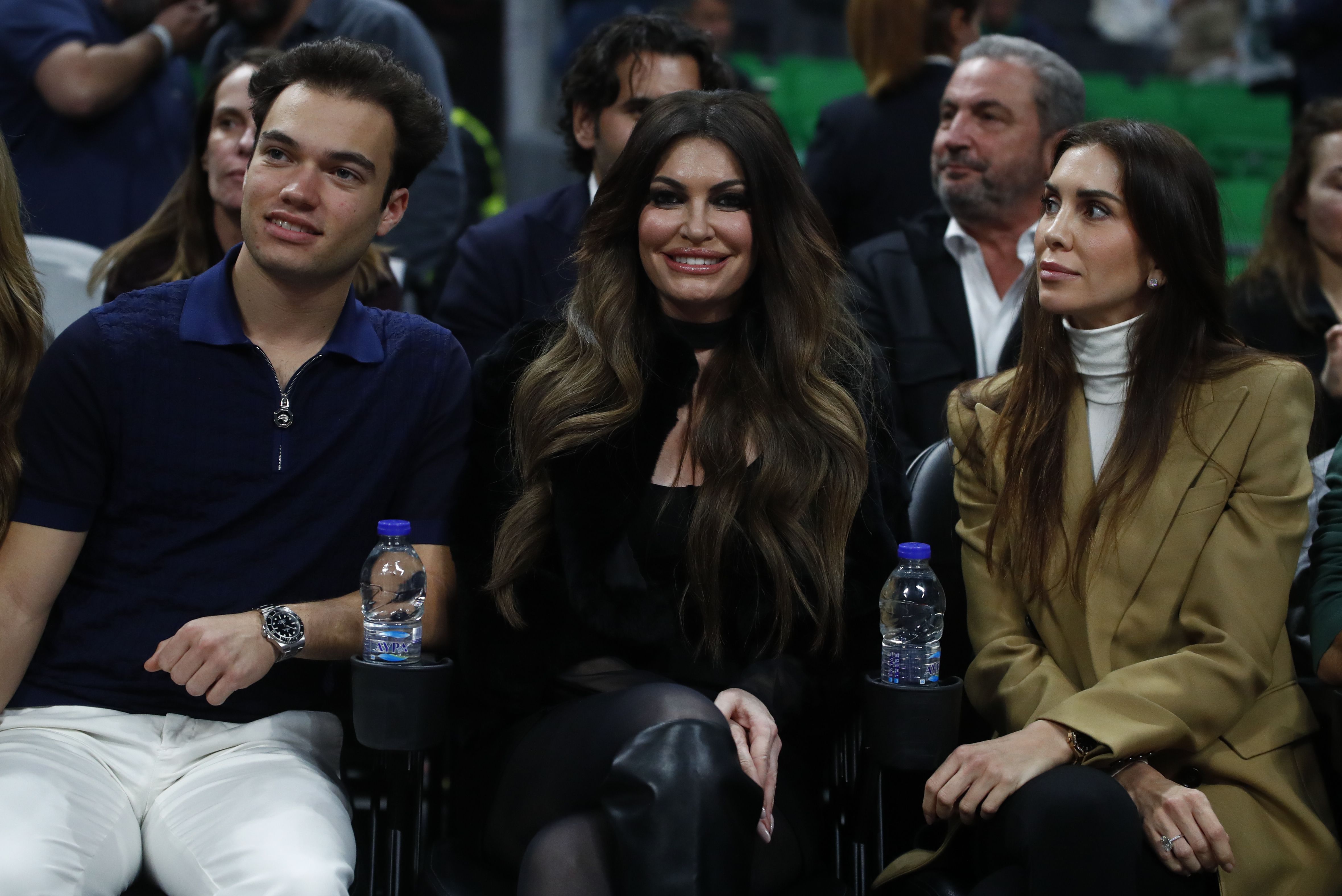 Μαζί της στα court seat του Telekom Center Athens βρίσκεται ο Ελληνοαμερικανός επιχειρηματίας, Χρήστος Μαραφάτσος και ο Αλέξανδρος Εξάρχου, Πρόεδρος του ΔΣ και Διευθύνων Σύμβουλος του Ομίλου Εταιρειών AKTOR.