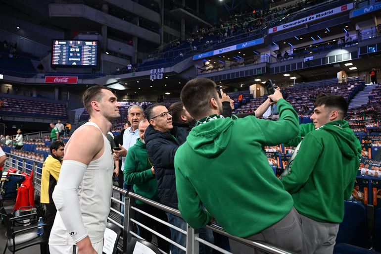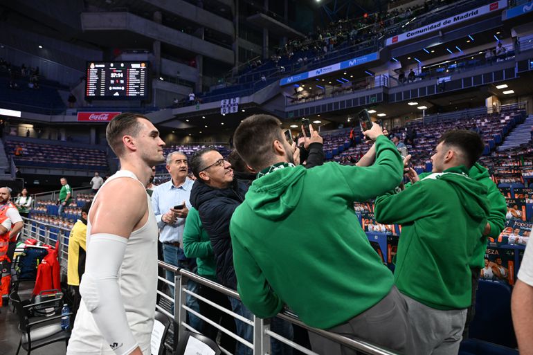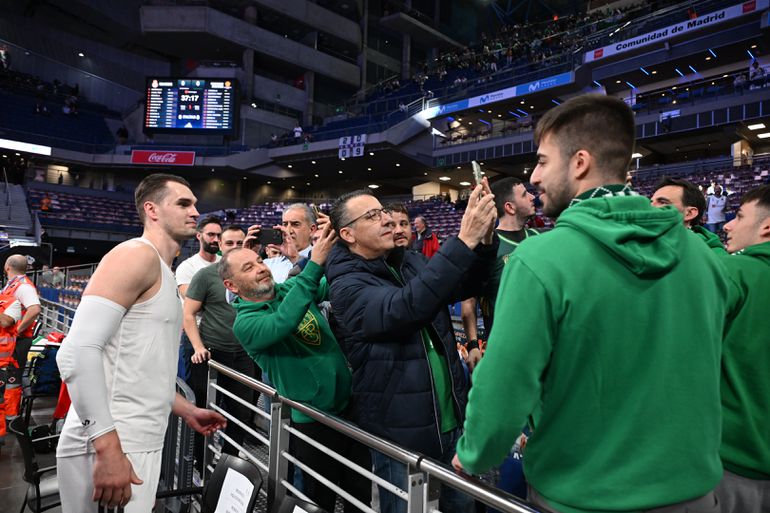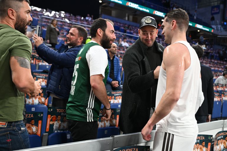 Μερικοί φίλαθλοι του Παναθηναϊκού στη Movistar Arena βρήκαν λίγο χρόνο να τα πουν και να βγάλουν σέλφι με τον πρώην παίκτη της ομάδας, Μάριο Χεζόνια.