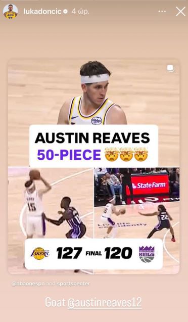 Αμφότεροι οι Λεμπρόν και Λούκα Ντόντσιτς, σχολίασαν την ιστορική εμφάνιση του 27χρονου, Όστιν Ριβς, ο οποίος έκανε ρεκόρ καριέρας σημειώνοντας 51 πόντους στη νίκη επί των Κινγκς.