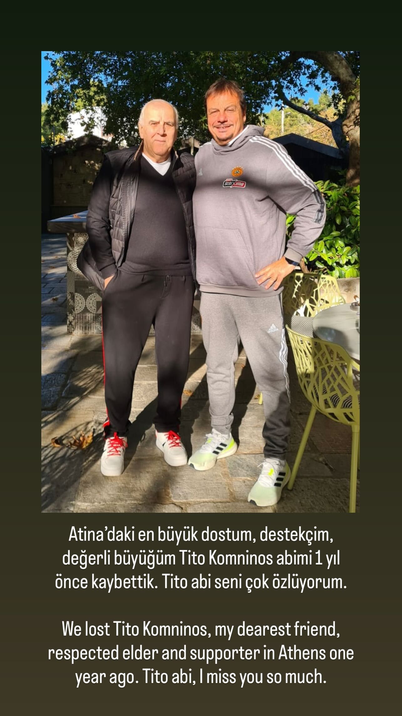 Συγκεκριμένα, ο Τούρκος τεχνικός δημοσίευσε μια κοινή τους φωτογραφία σε story, γράφοντας ένα προσωπικό μήνυμα για τον φίλο του: