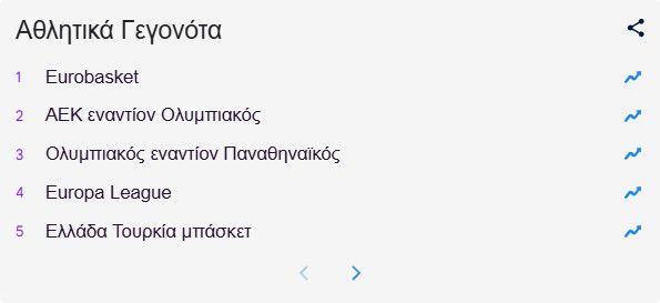 Αναλυτικά τι αναζήτησαν οι Έλληνες στο Google Search και την κατηγορία «Αθλητικά Γεγονότα»: