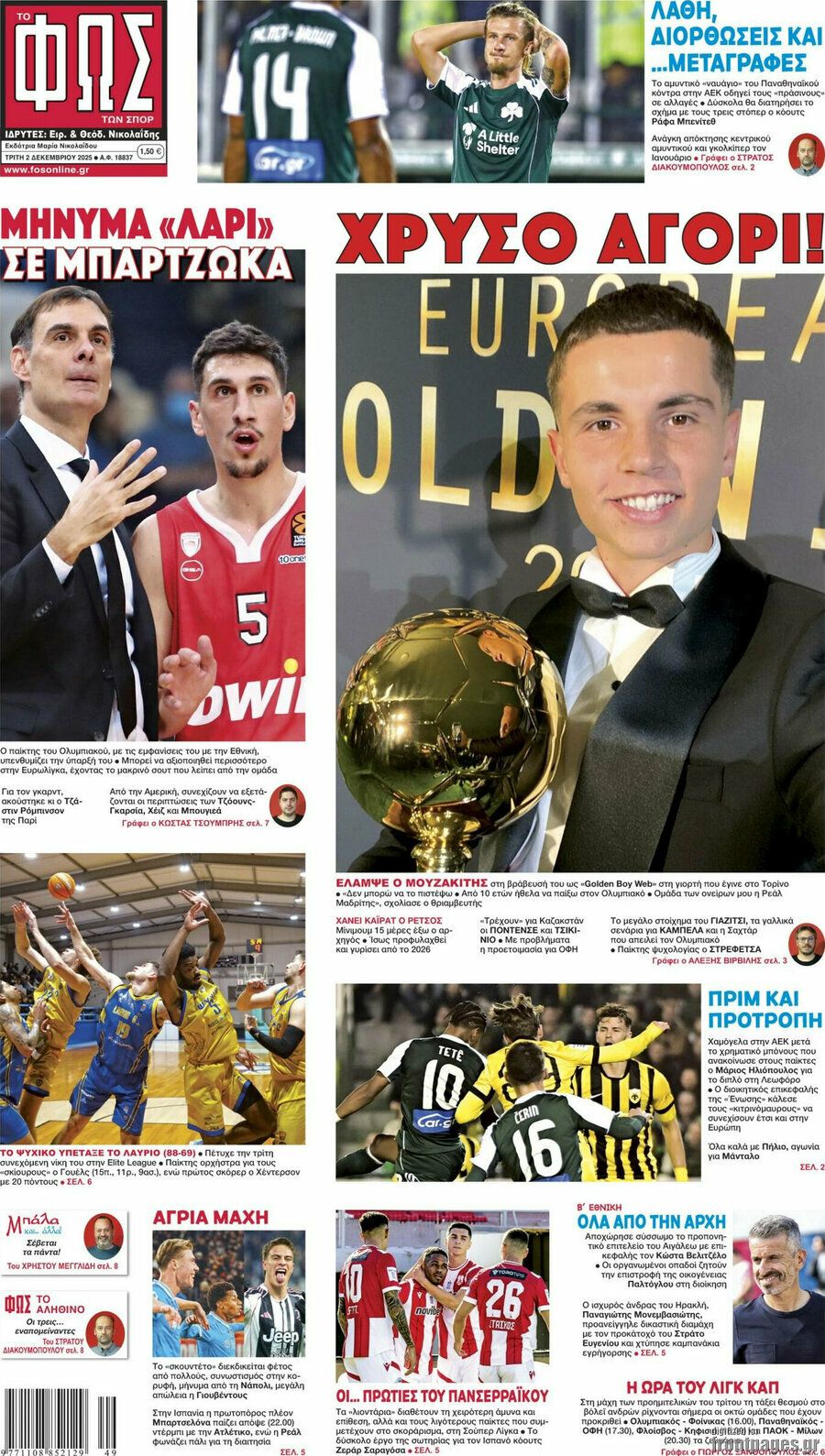 Δείτε μέσω της ενότητας του Sportal όλα τα πρωτοσέλιδα των αθλητικών εφημερίδων.