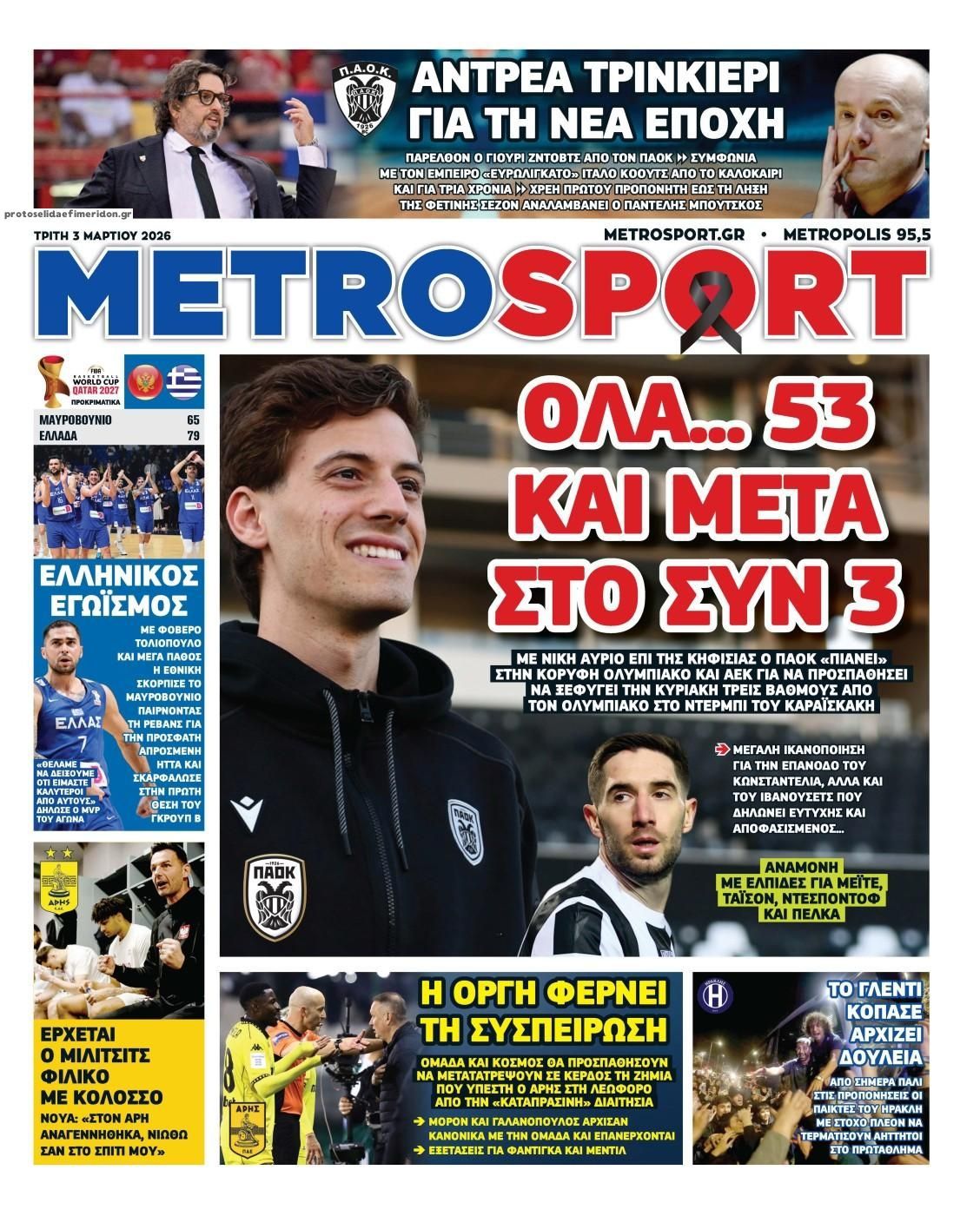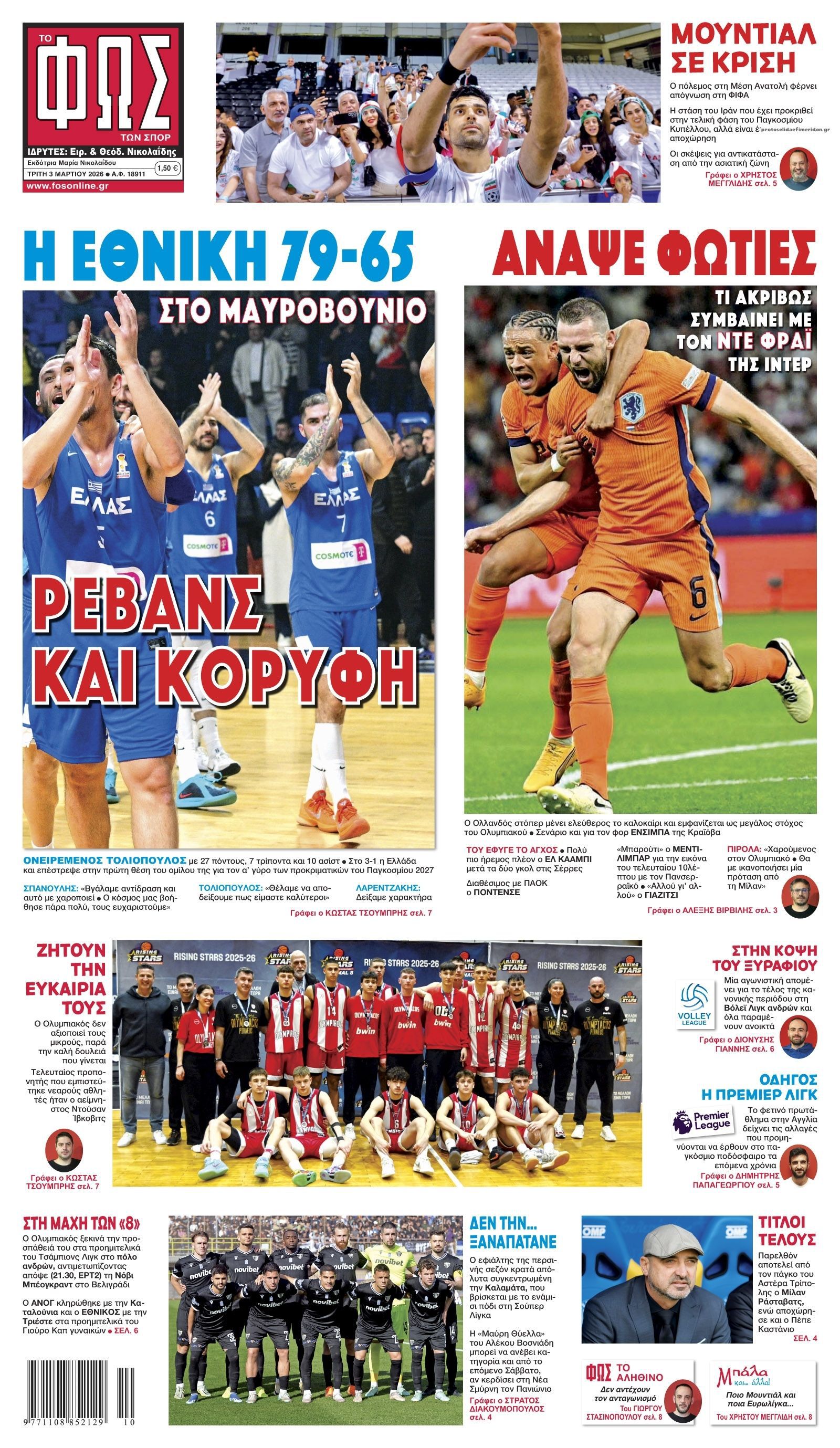 Δείτε τα πρωτοσέλιδα των αθλητικών εφημερίδων της Τρίτης (03/03).