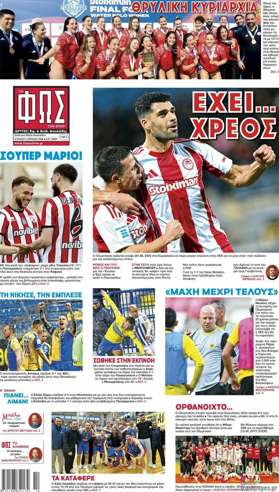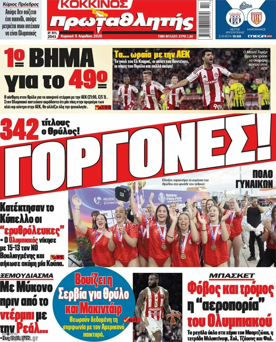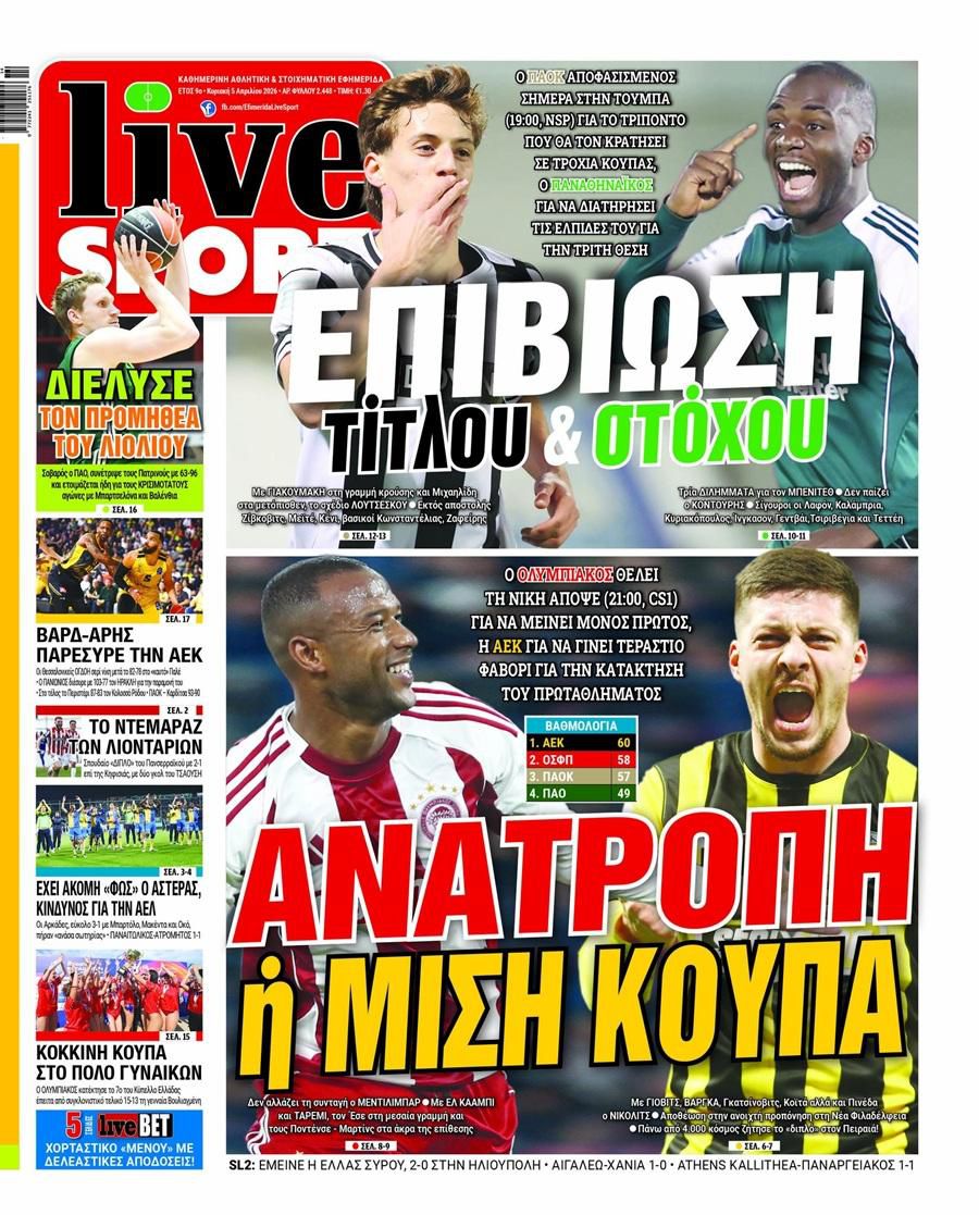 Δείτε τα πρωτοσέλιδα των αθλητικών εφημερίδων της Κυριακής (05/04).