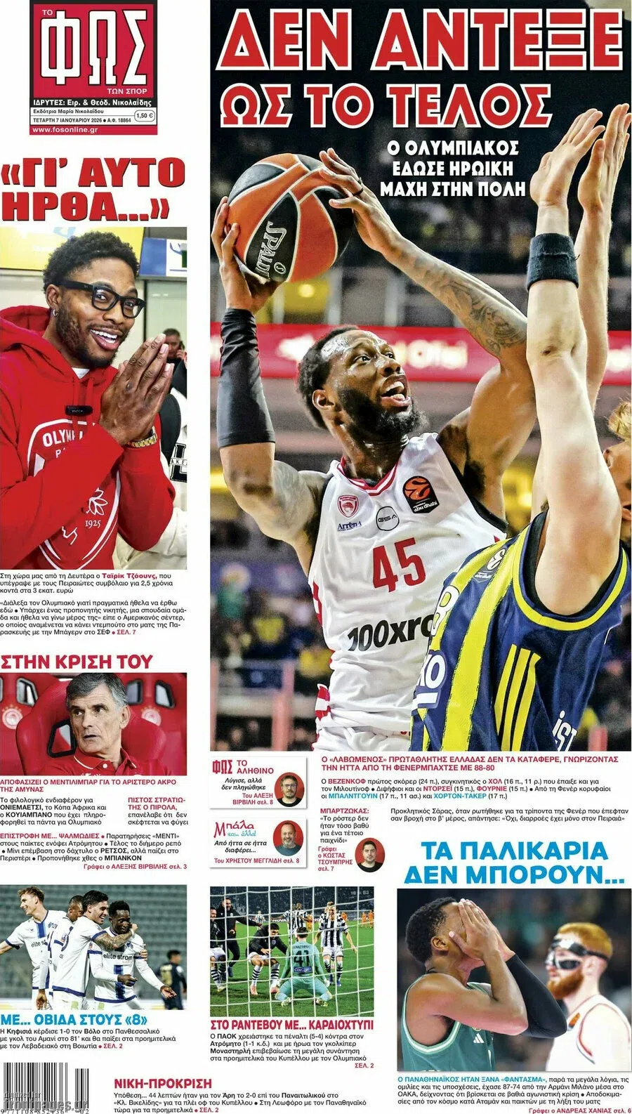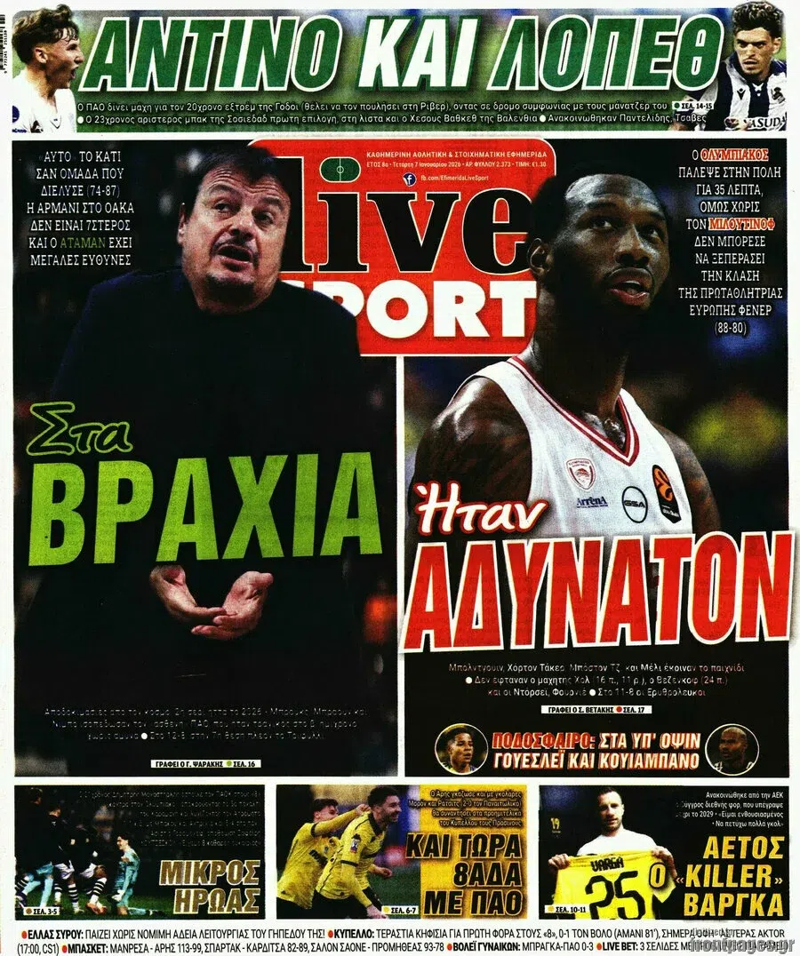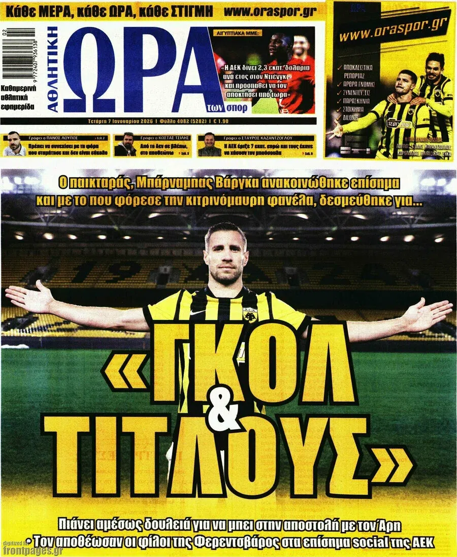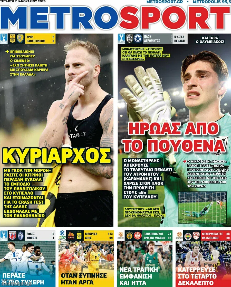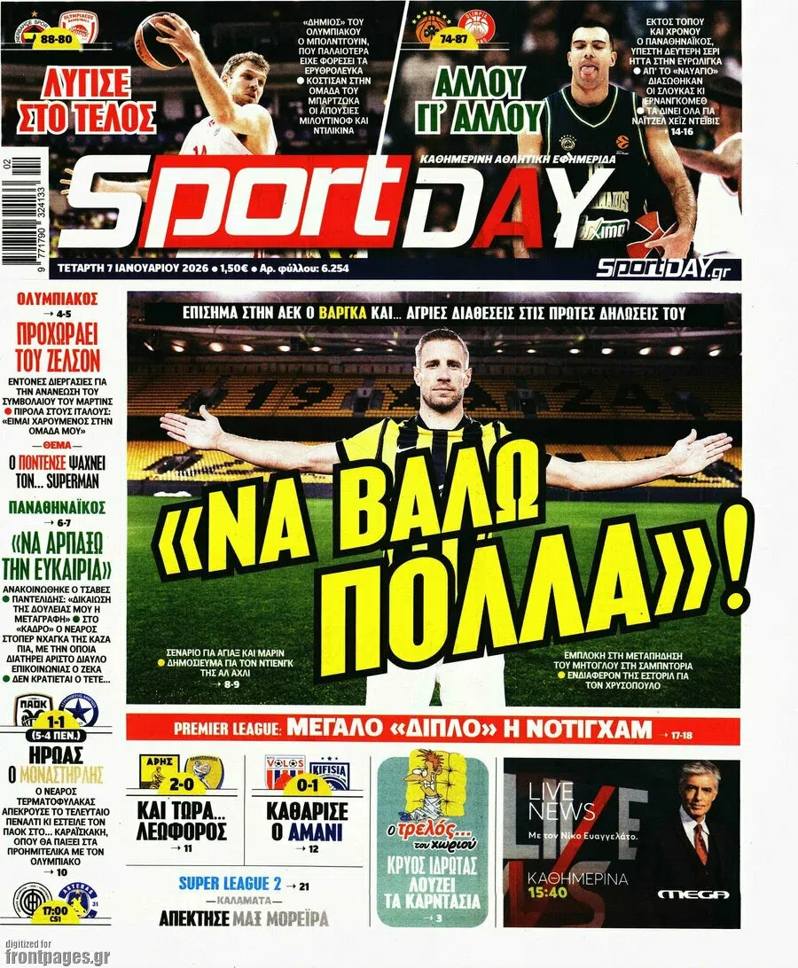 Δείτε τα πρωτοσέλιδα των αθλητικών εφημερίδων της Τετάρτης (07/01).