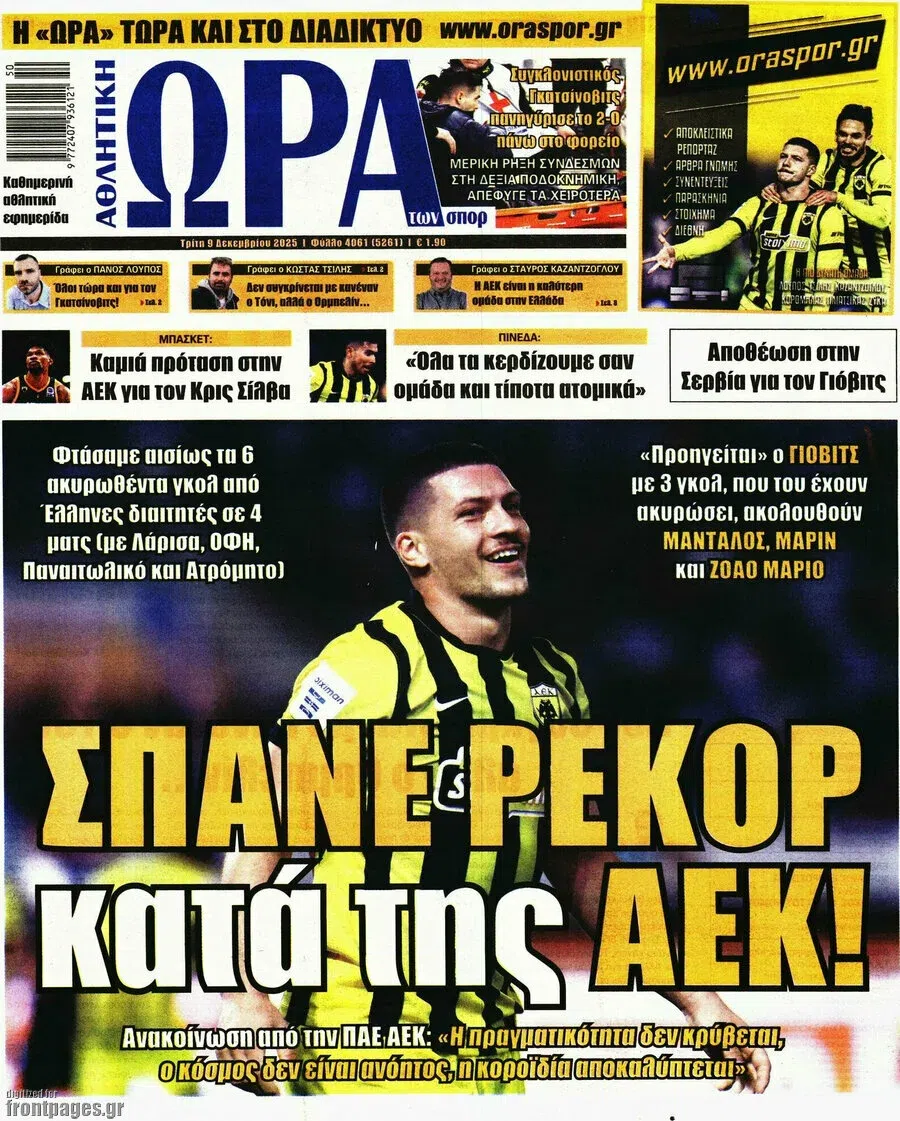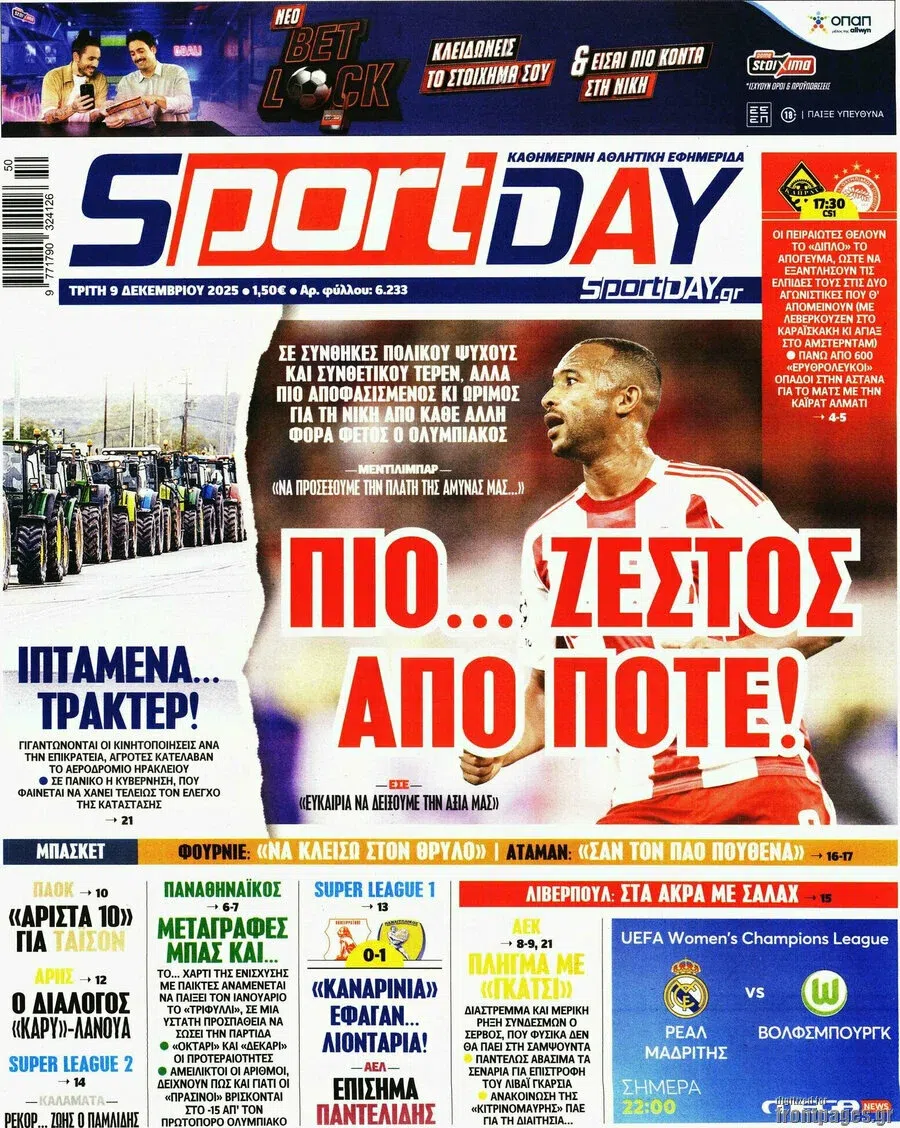 Δείτε μέσω της ενότητας του Sportal όλα τα πρωτοσέλιδα των αθλητικών εφημερίδων.