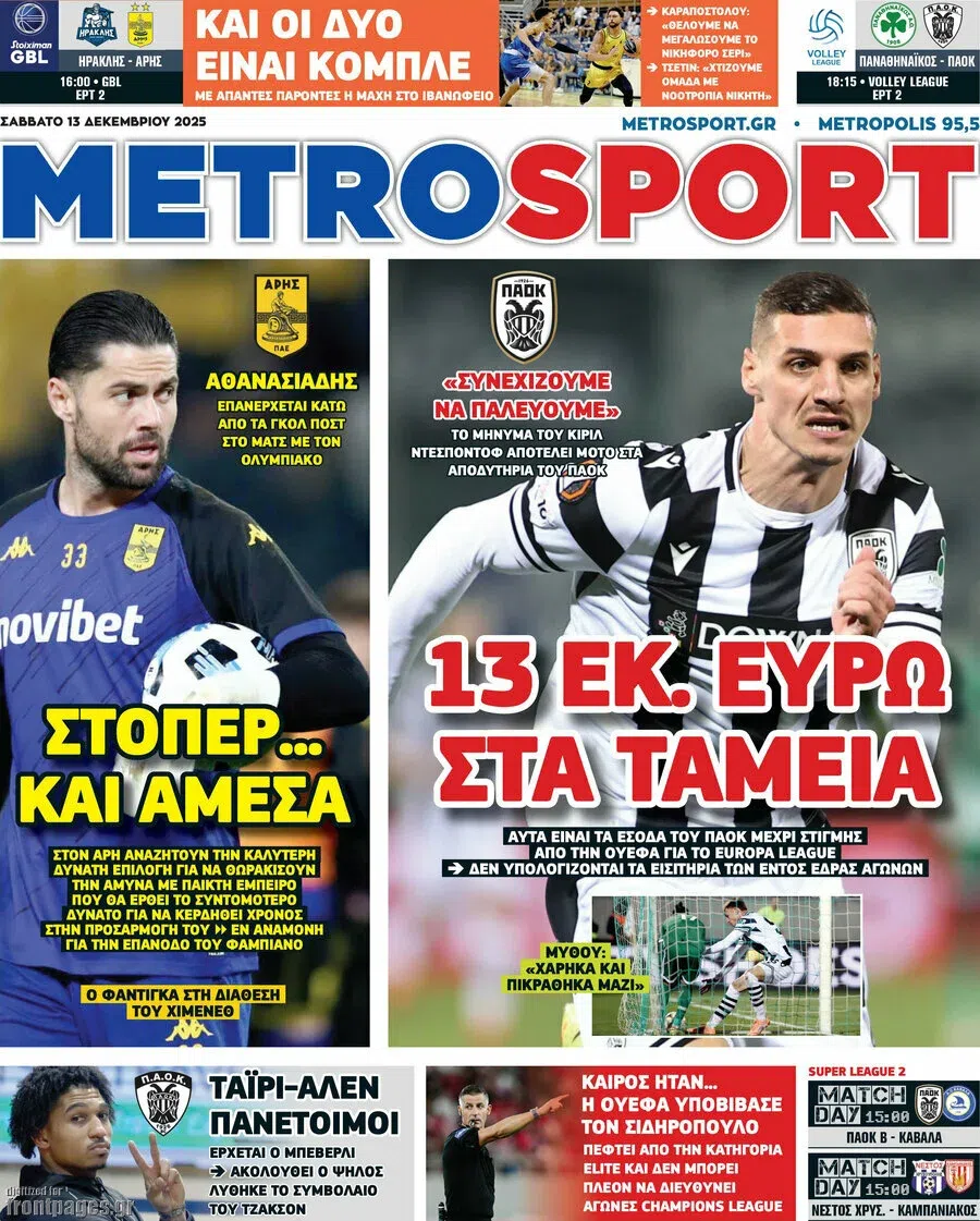 Δείτε μέσω της ενότητας του Sportal όλα τα πρωτοσέλιδα των αθλητικών εφημερίδων.