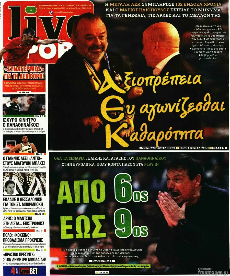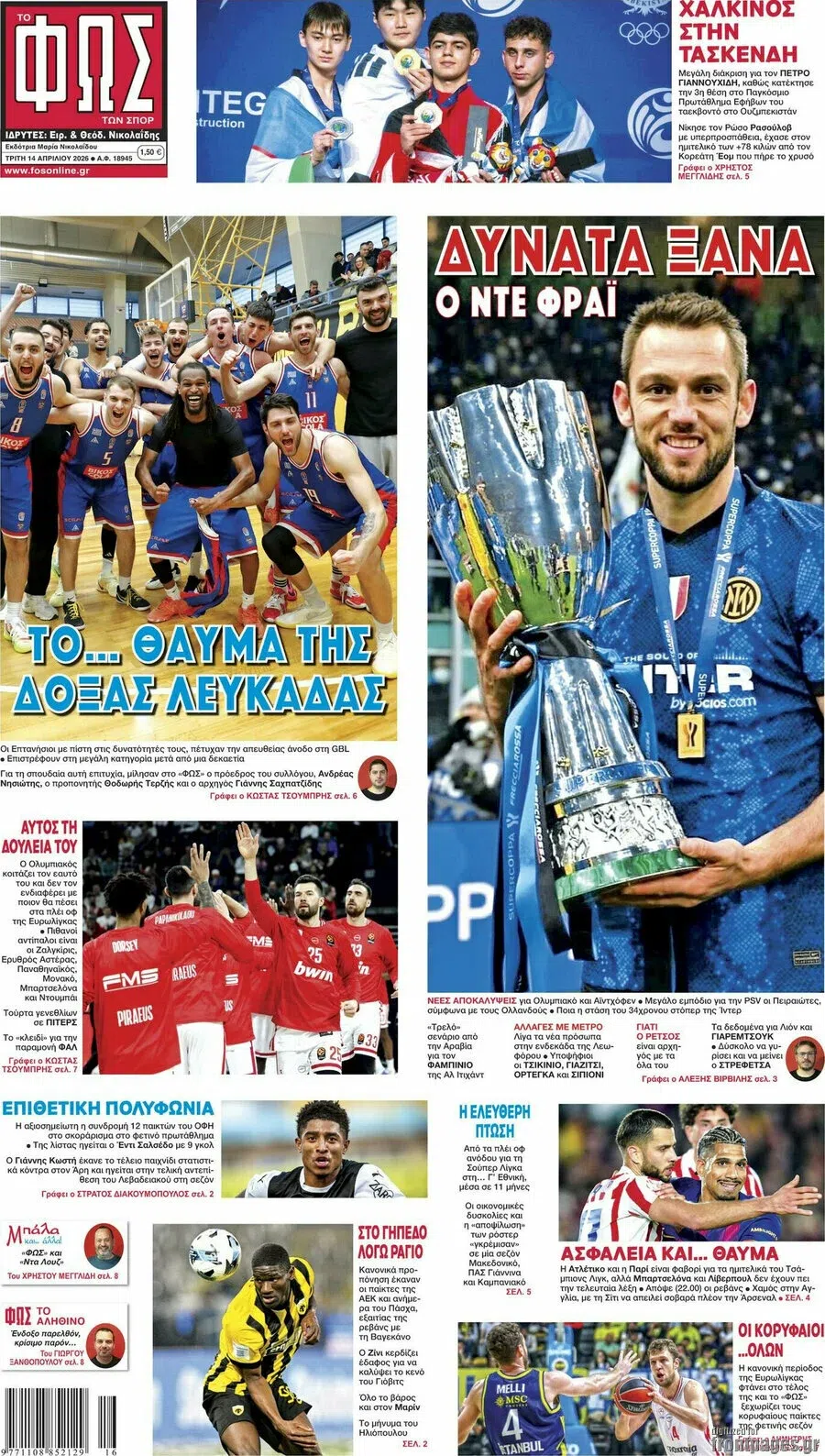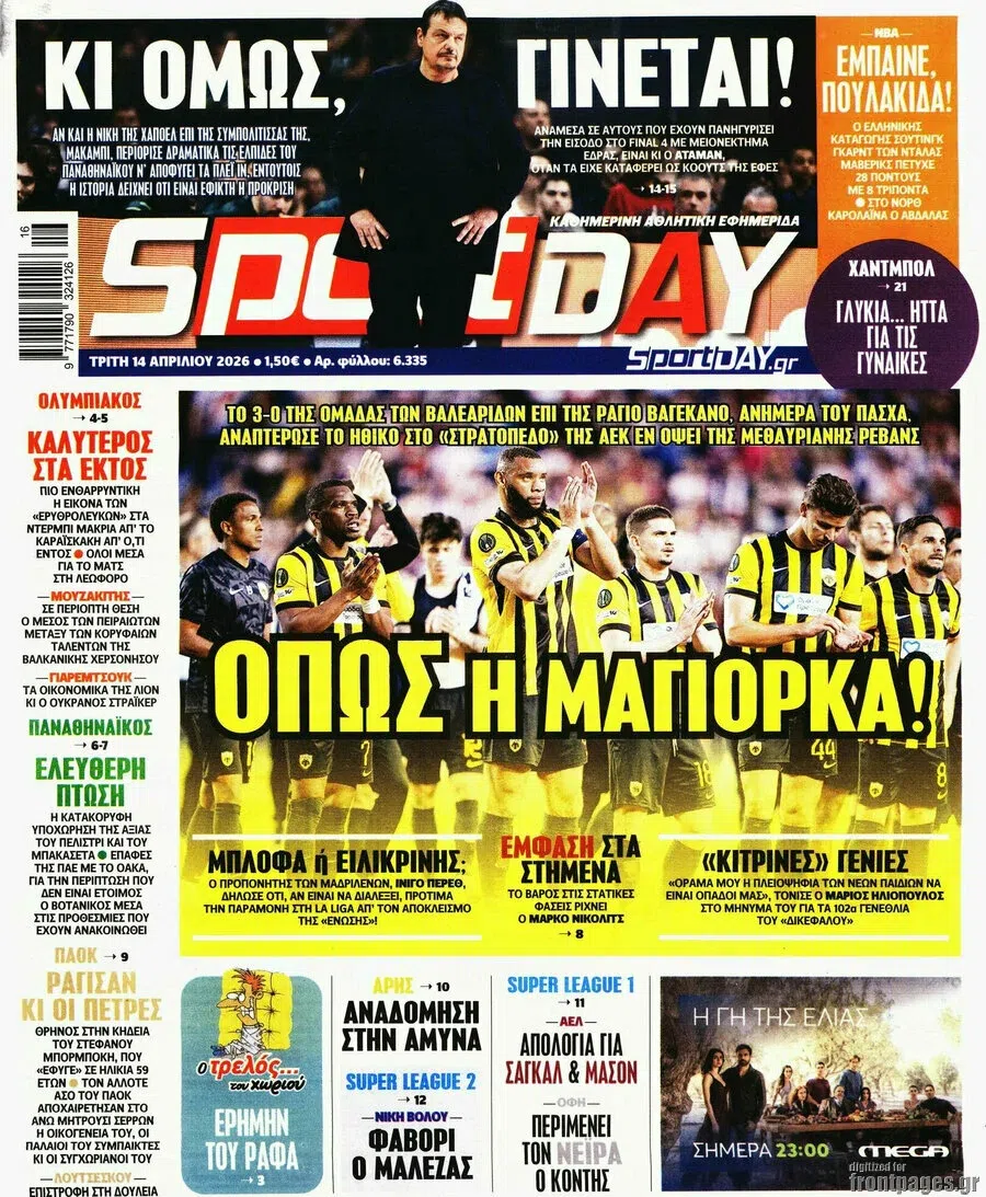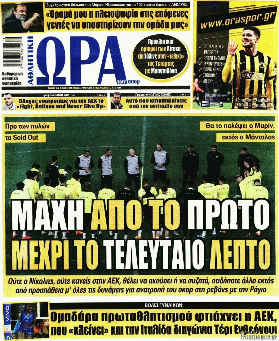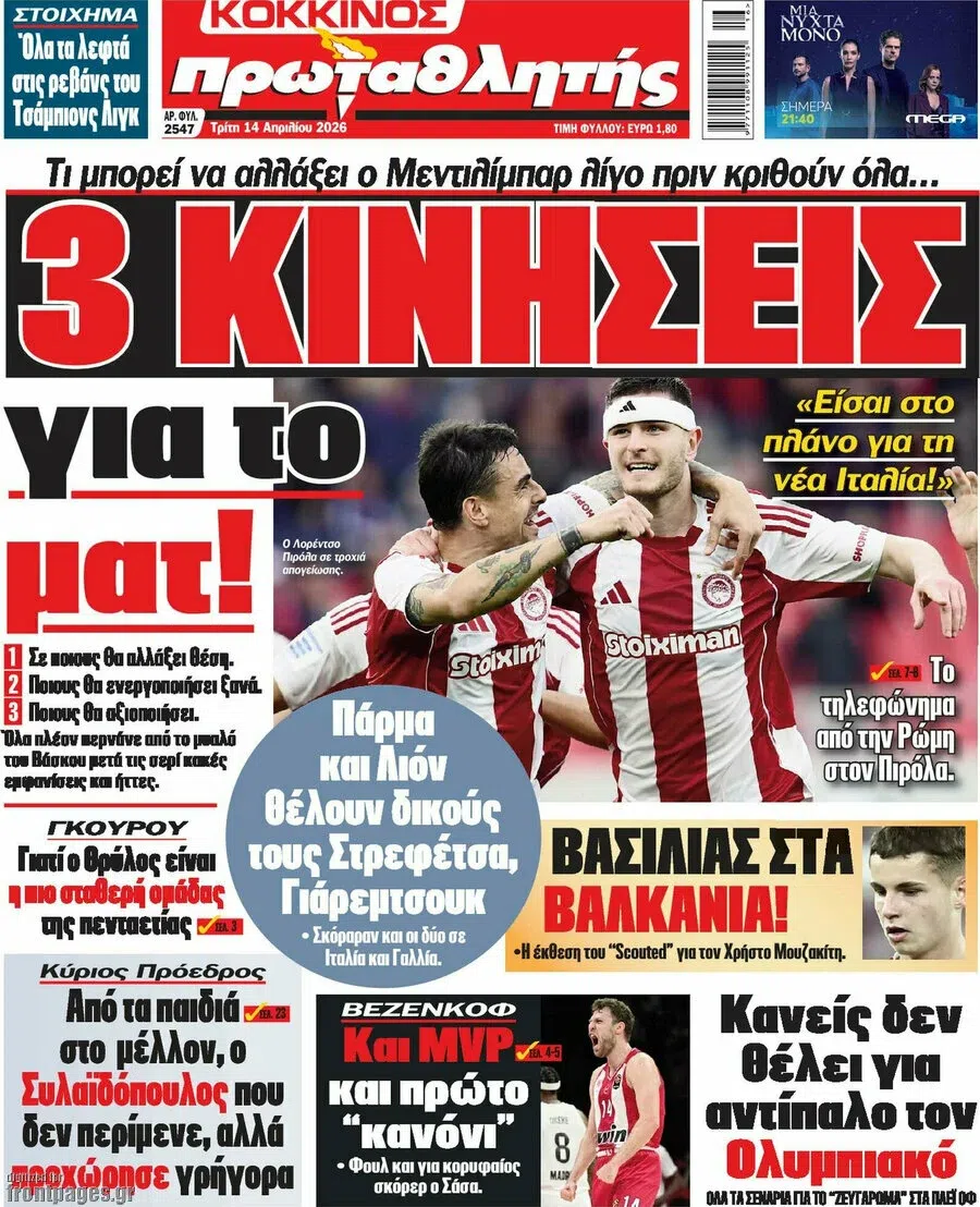 Δείτε τα πρωτοσέλιδα των αθλητικών εφημερίδων της Τρίτης (14/04).
