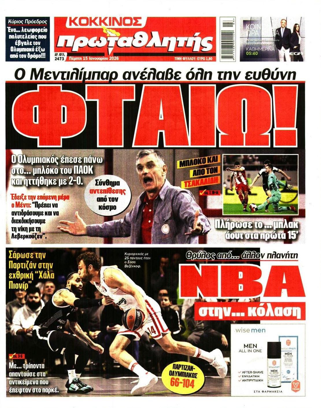 Δείτε τα πρωτοσέλιδα των αθλητικών εφημερίδων της Πέμπτης (15/01).