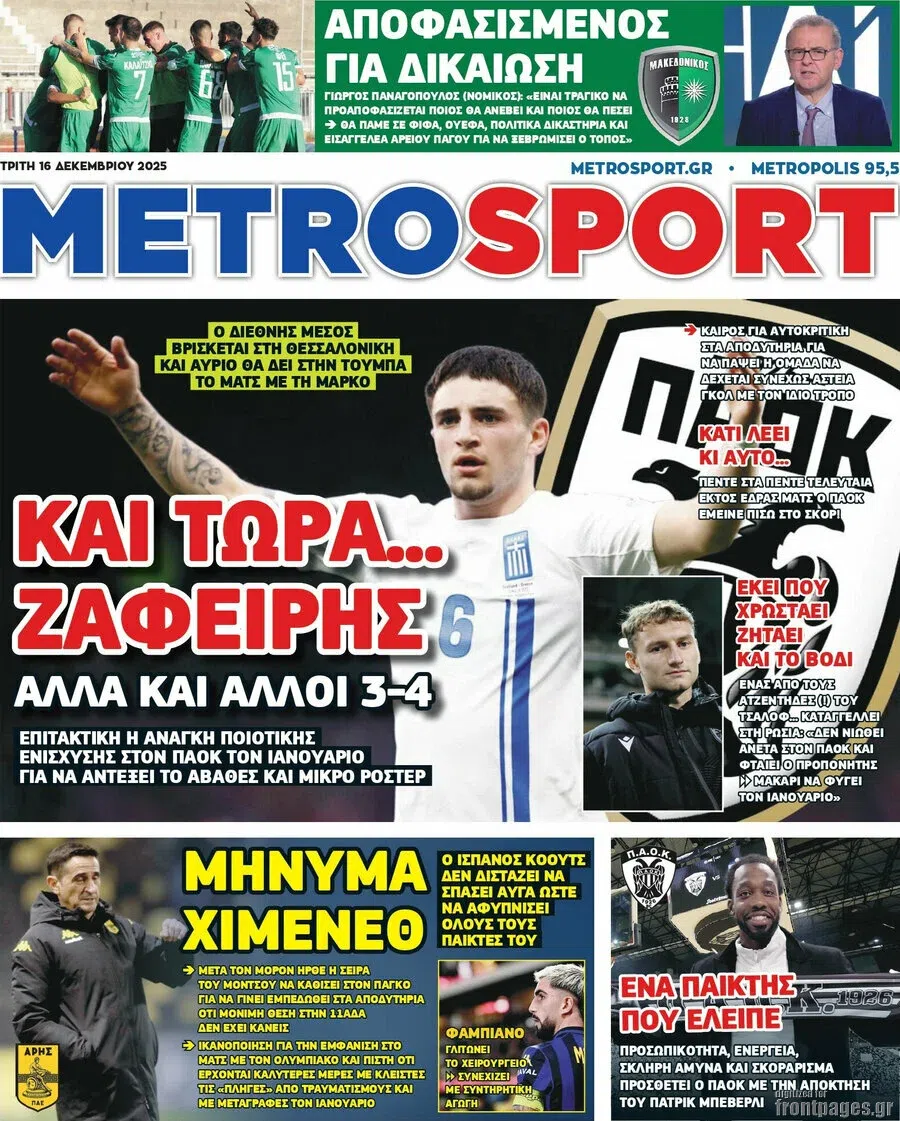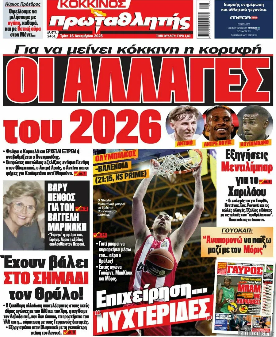 Δείτε μέσω της ενότητας του Sportal όλα τα πρωτοσέλιδα των αθλητικών εφημερίδων.