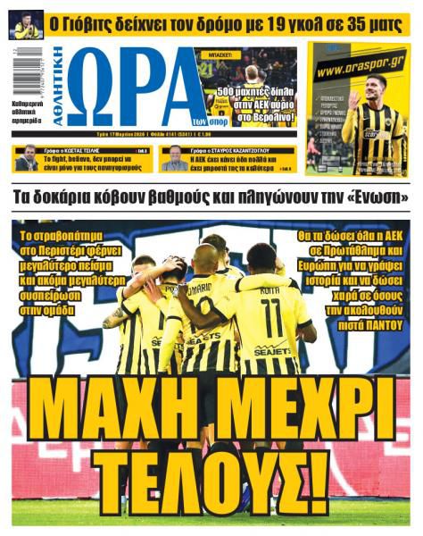 Δείτε τα πρωτοσέλιδα των αθλητικών εφημερίδων της Τρίτης (17/03).