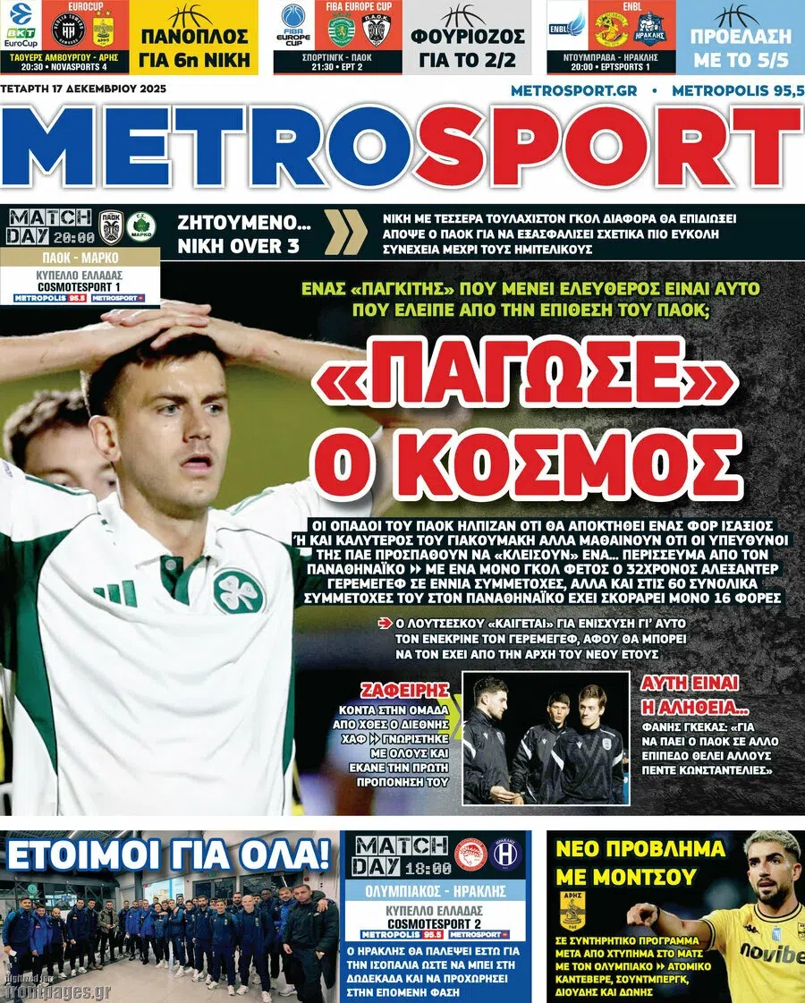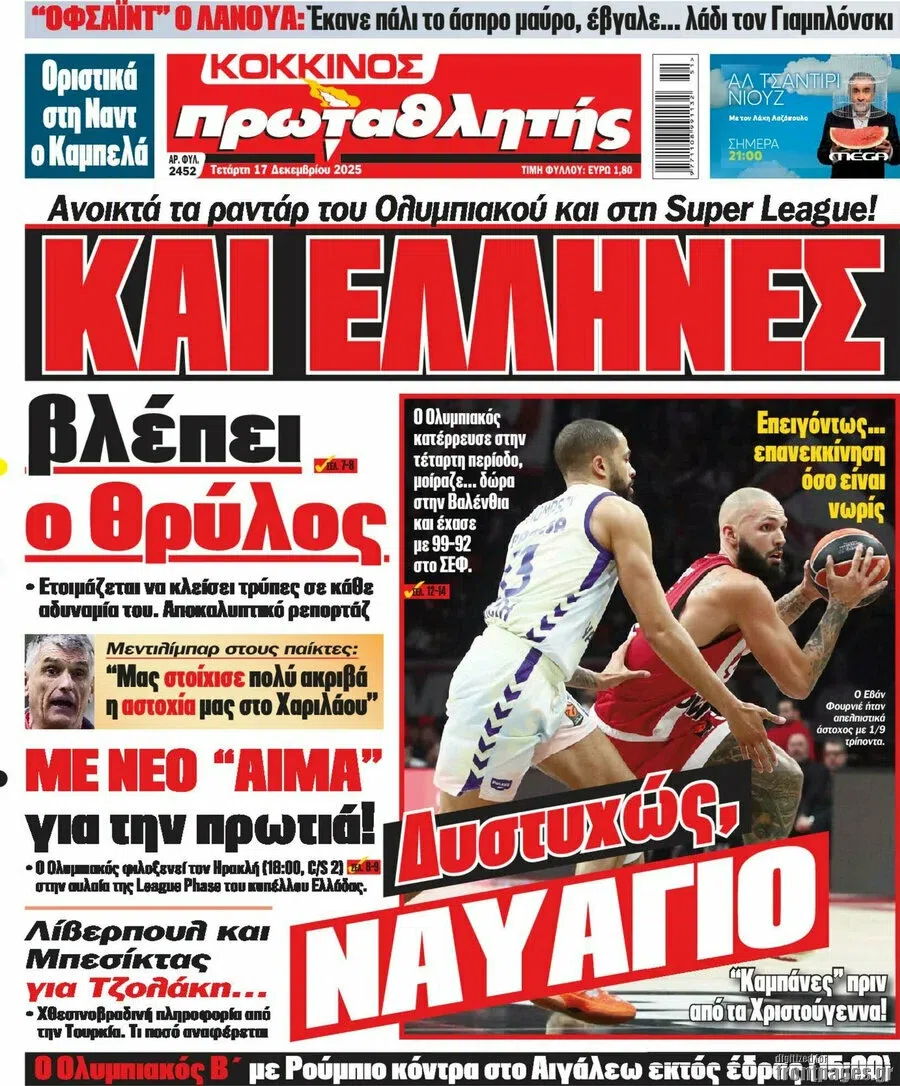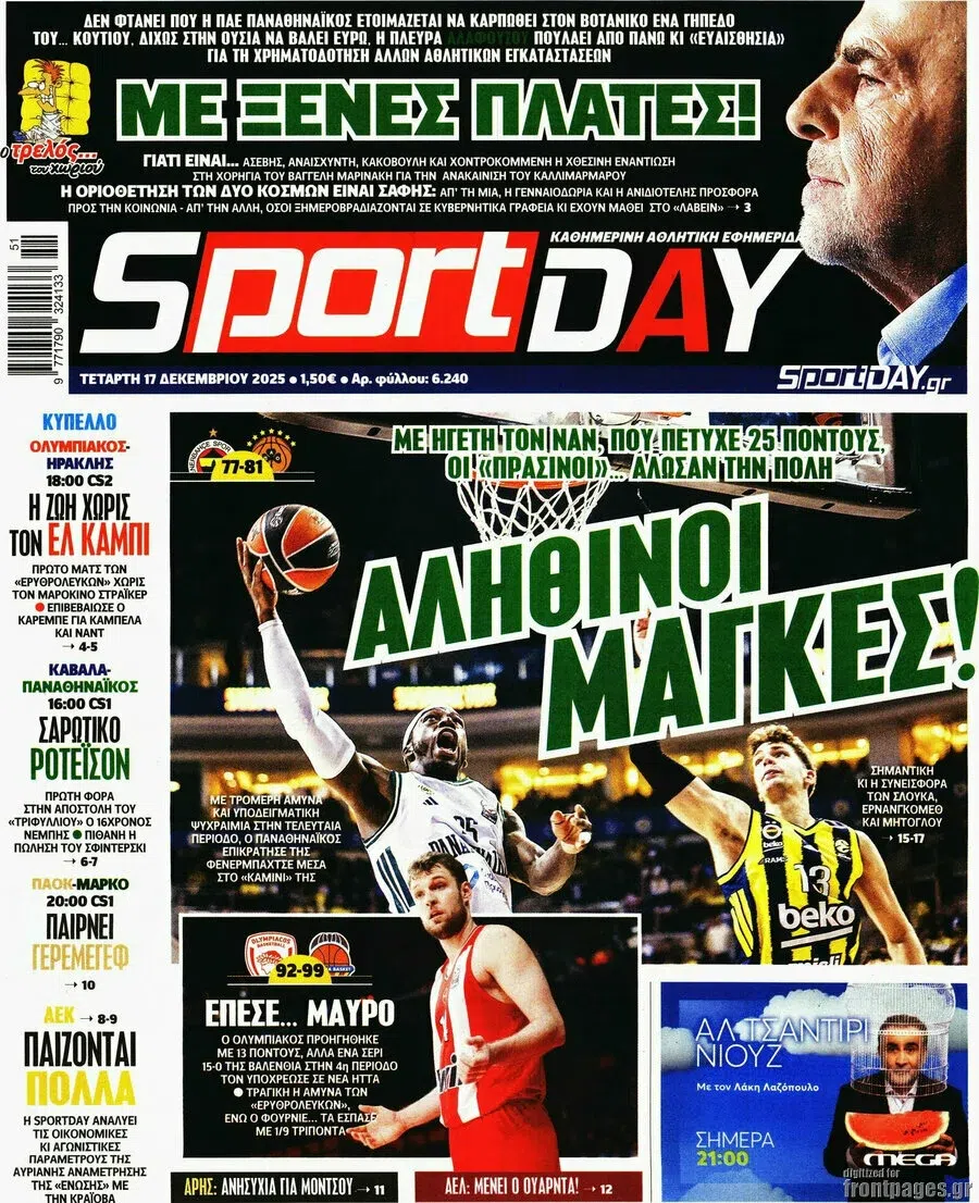 Δείτε μέσω της ενότητας του Sportal όλα τα πρωτοσέλιδα των αθλητικών εφημερίδων.