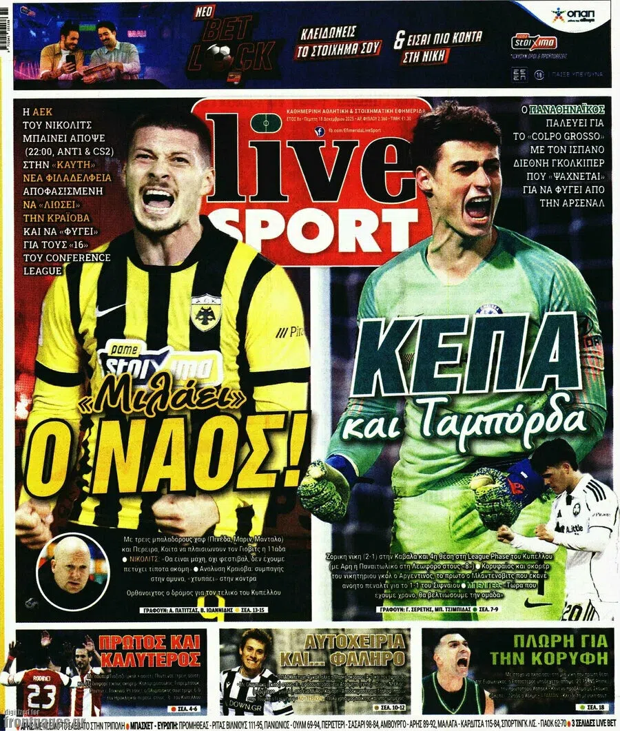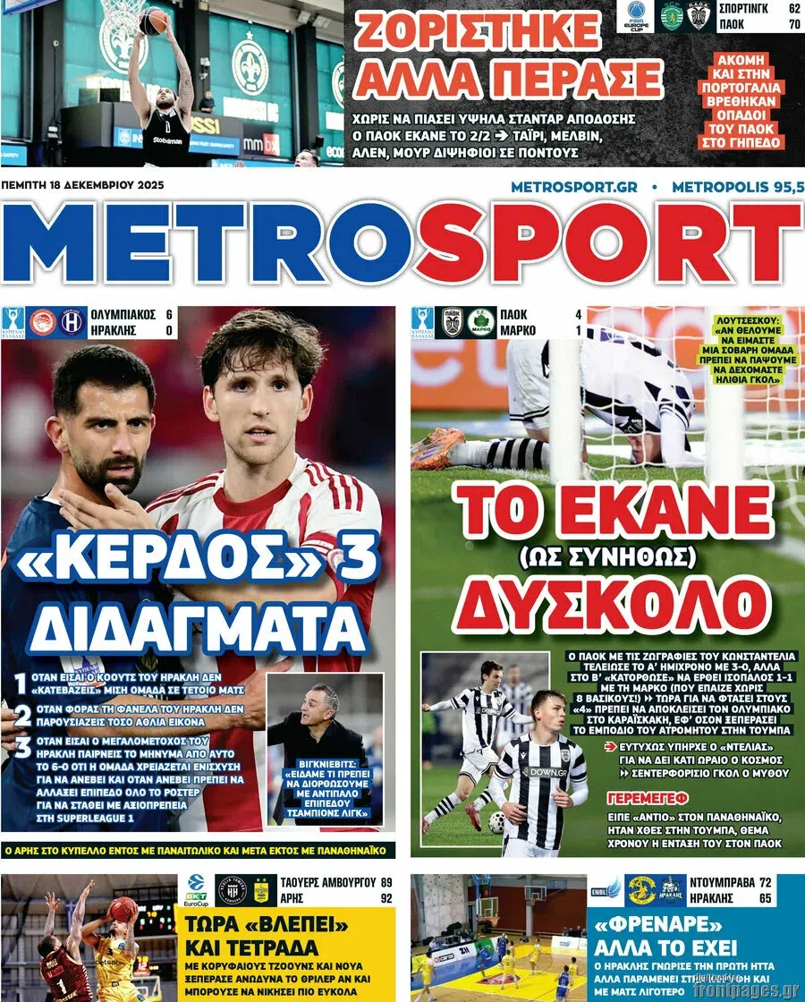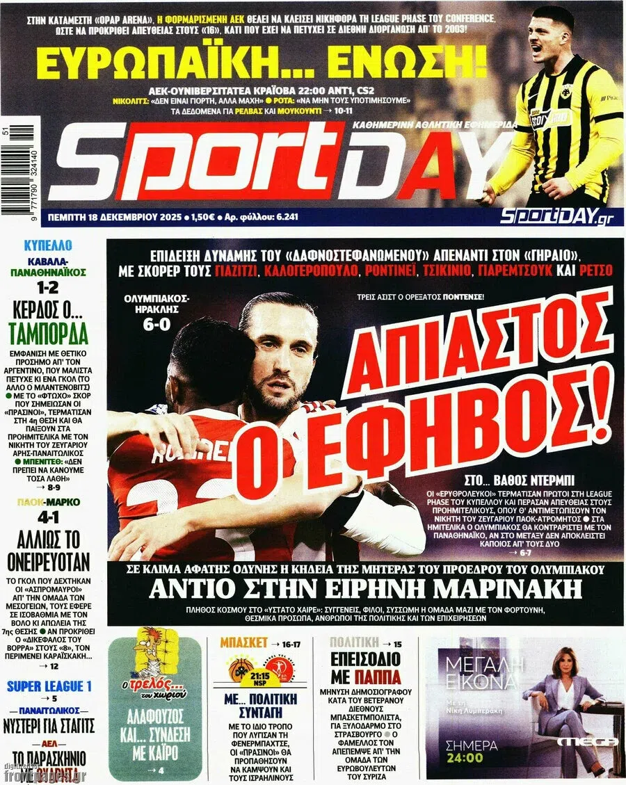 Δείτε μέσω της ενότητας του Sportal όλα τα πρωτοσέλιδα των αθλητικών εφημερίδων.