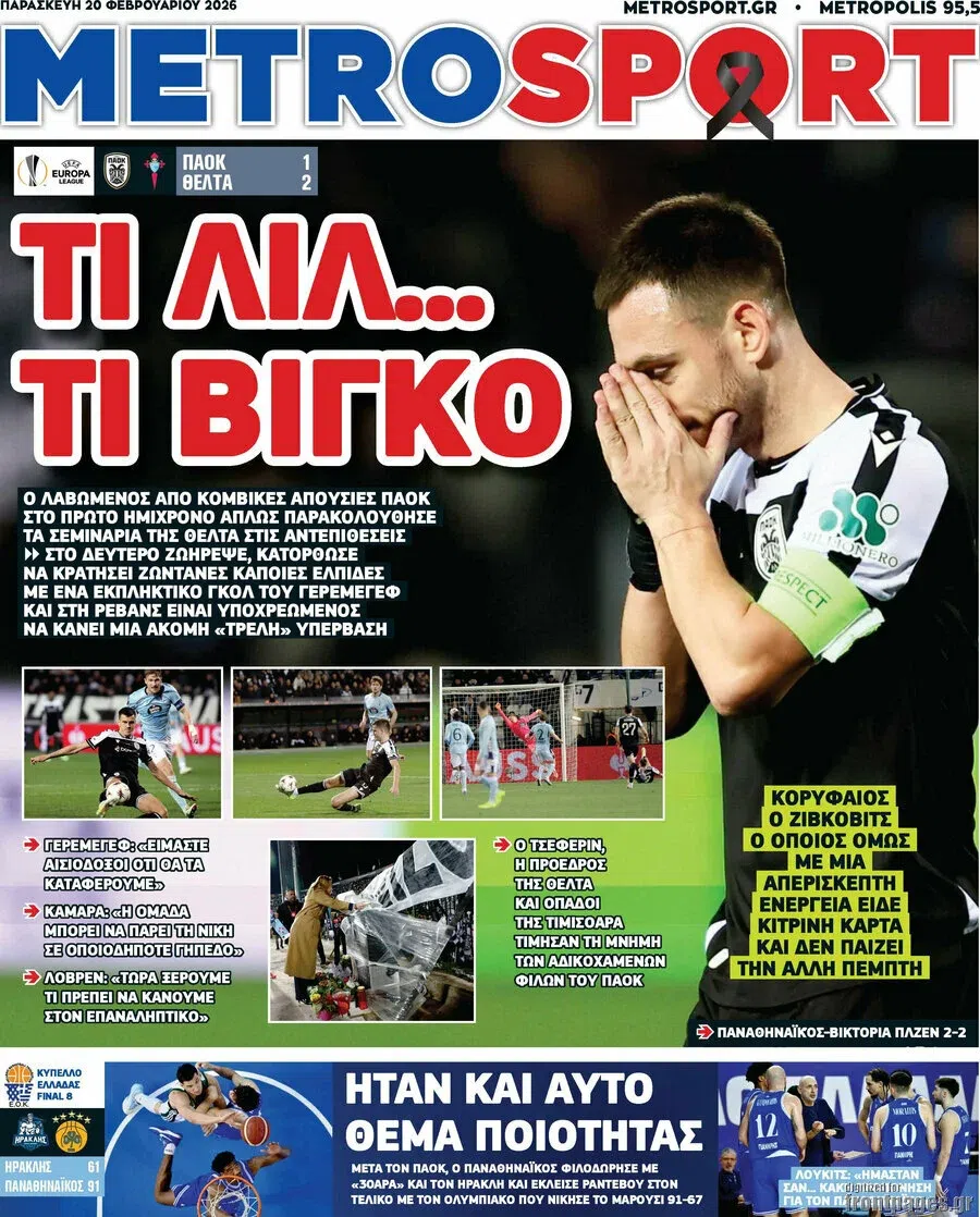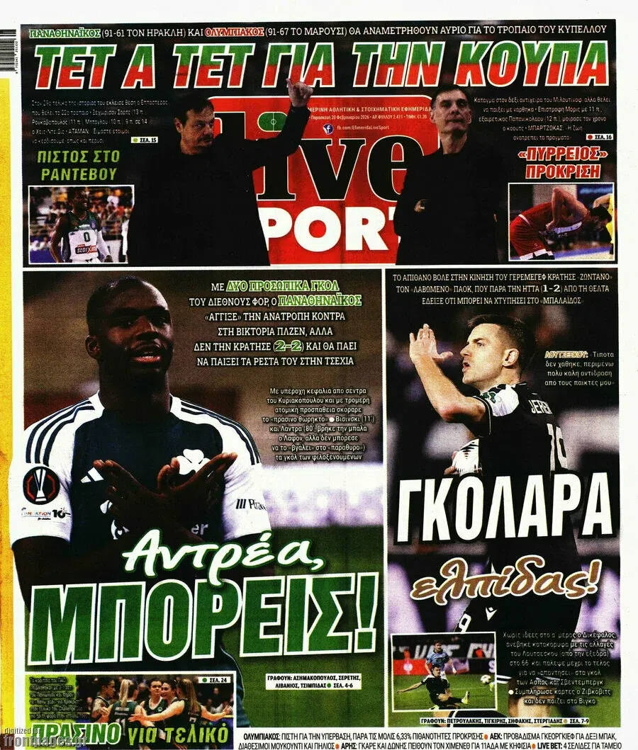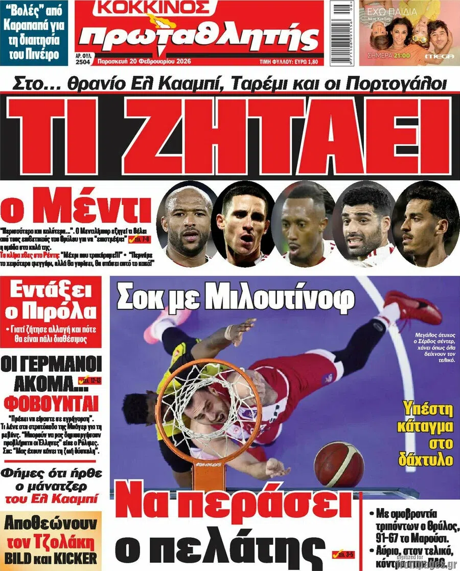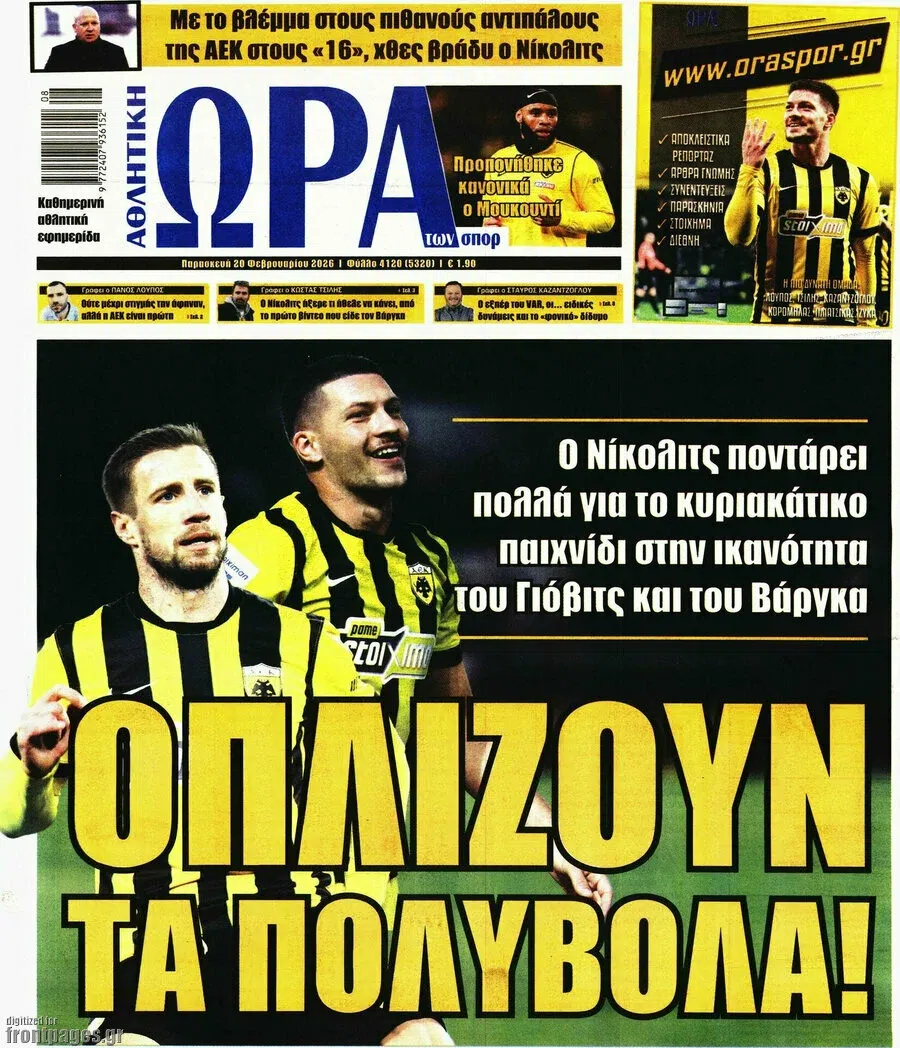 Δείτε τα πρωτοσέλιδα των αθλητικών εφημερίδων της Παρασκευής (20/02).